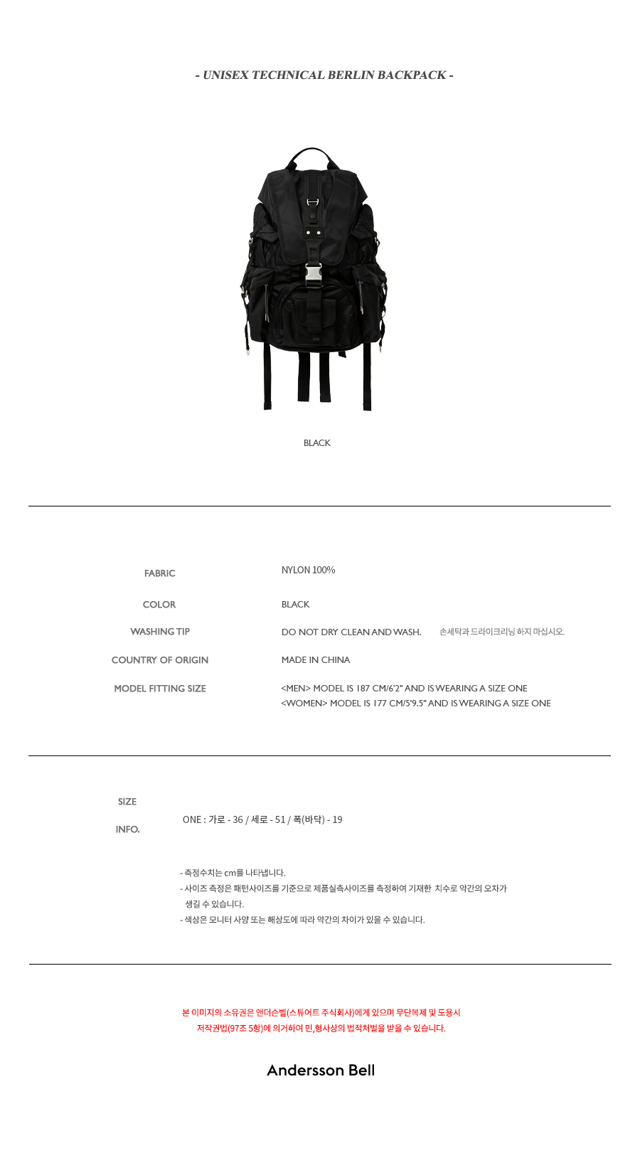 ADSB 앤더슨벨 뉴 유니섹스 테크니컬 베를린 백팩 블랙