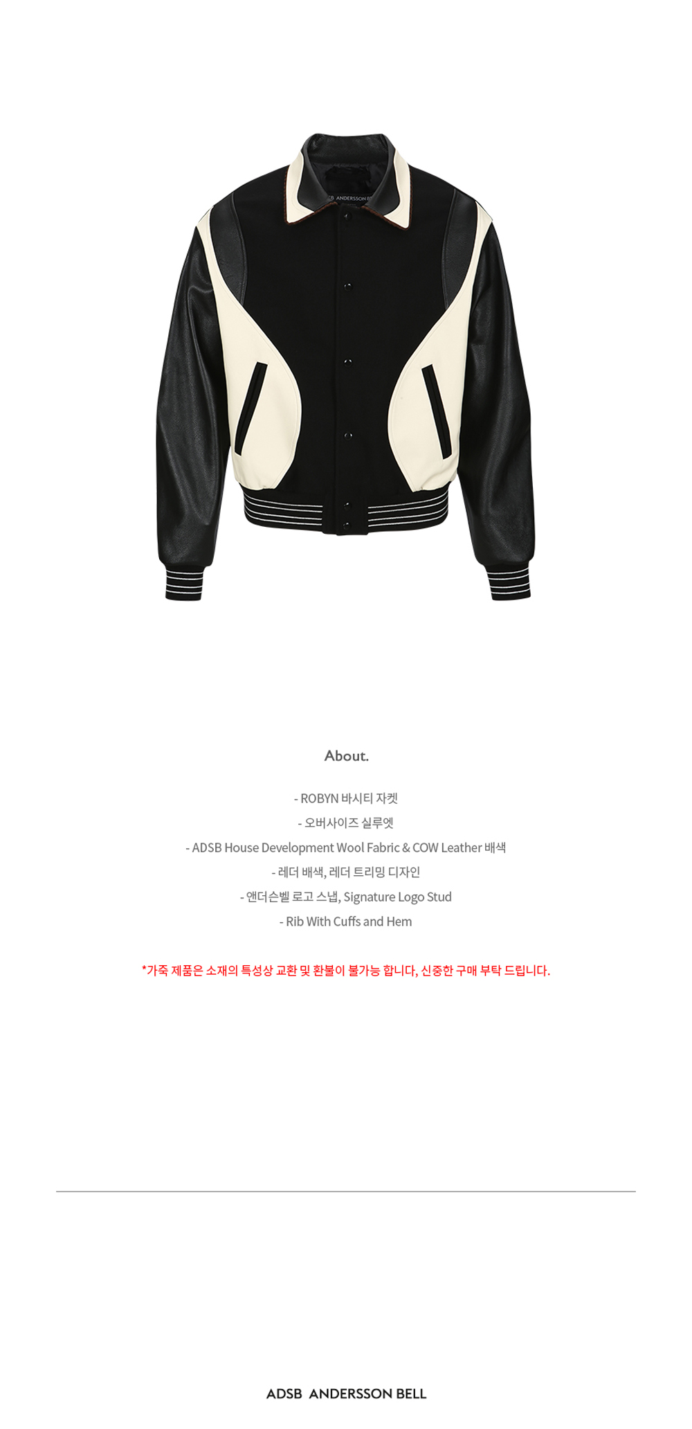 ADSB 앤더슨벨 로빈 바시티 자켓 블랙
