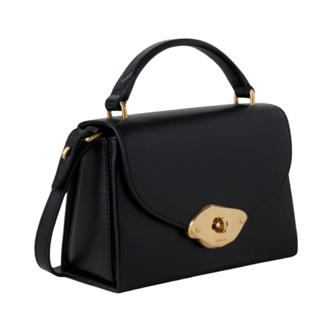 Mulberry High Gloss Leather Small Lana Top Handle Bag Black