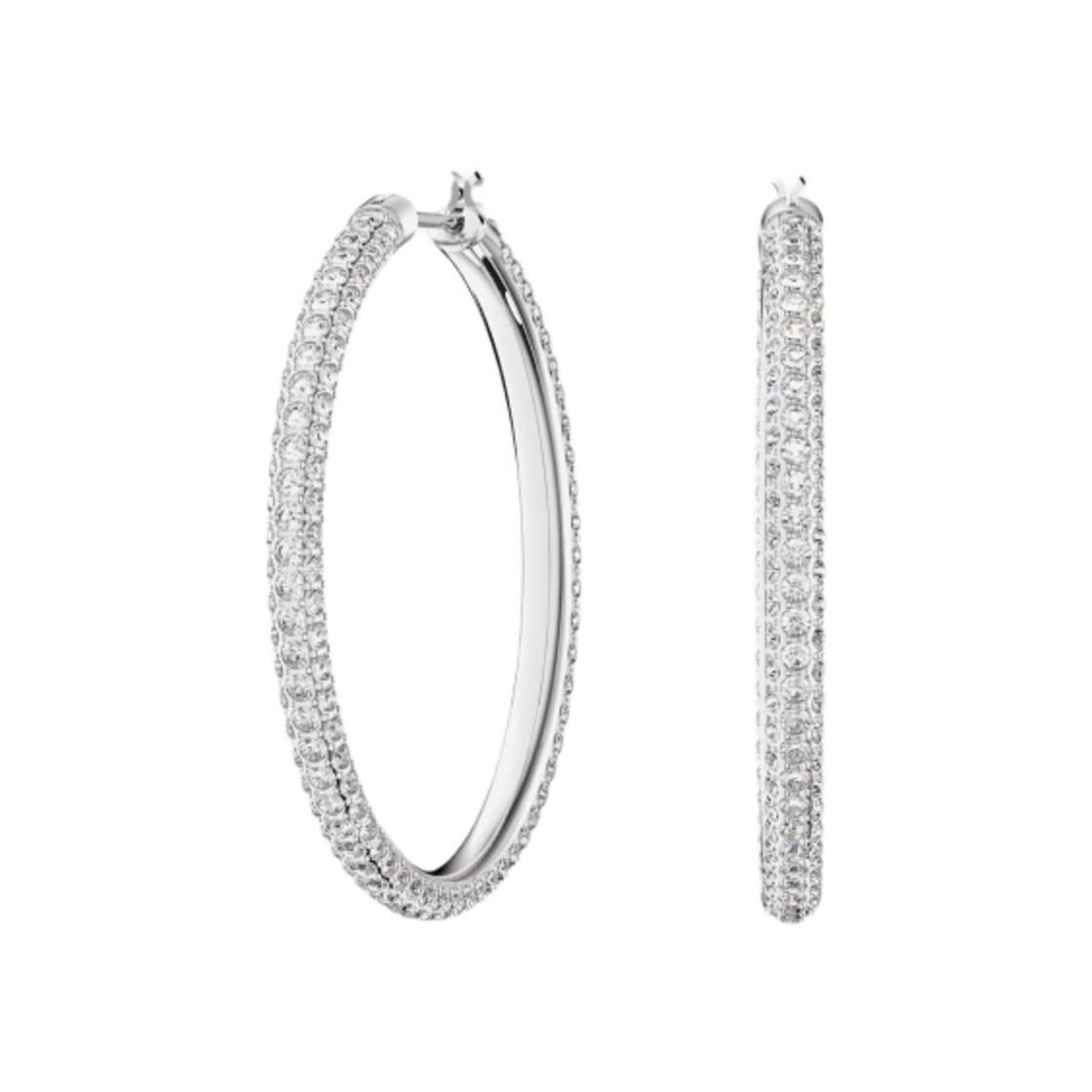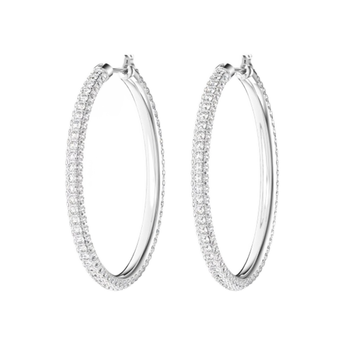 (W) Swarovski Stone Hoop Pave Large Earrings White Rhodium Plated