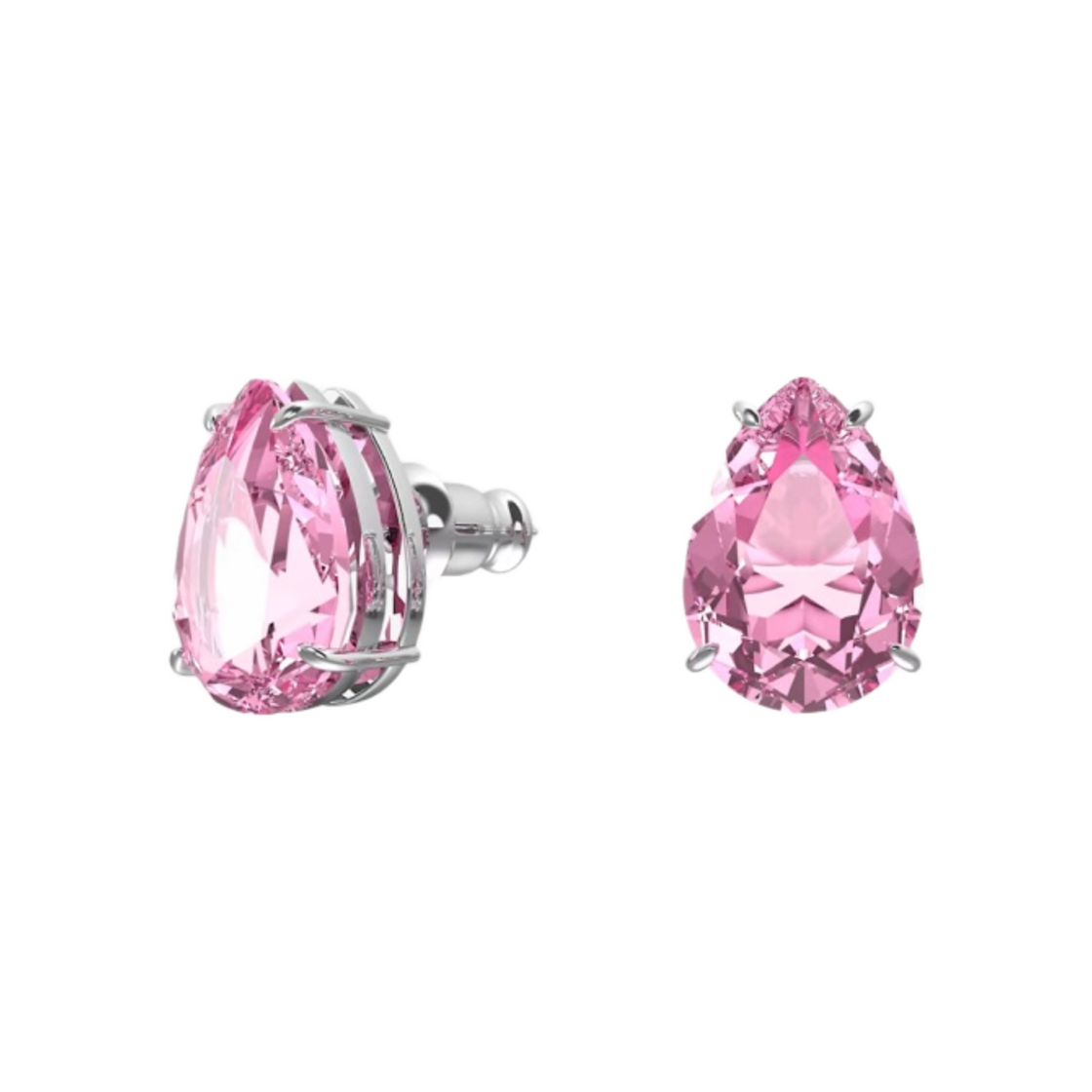 (W) Swarovski Gema Stud Drop Cut Earrings Pink Rhodium Plated