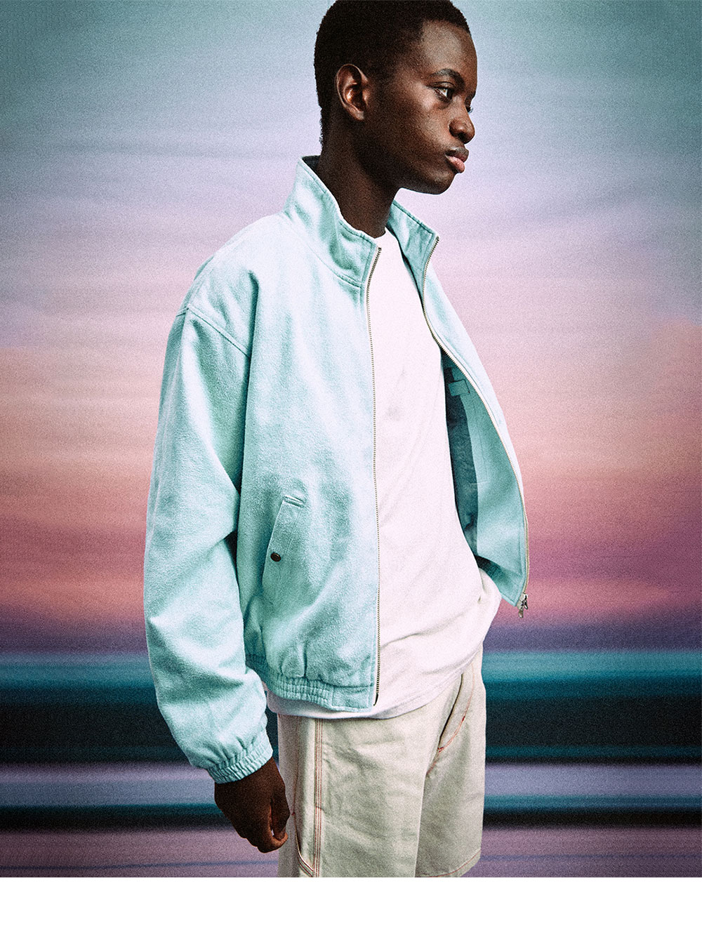 HARRINGTON JACKET은 코튼 폴리에스터 혼방 원단으로 부드러운 텍스처와 탄탄한 내구성을 느낄 수 있는 자켓입니다. 군더더기 없는 깔끔한 실루엣에 라운드 넥 칼라로 제작되었으며, 2-WAY 지퍼 디테일로 다양한 실루엣을 연출할 수 있습니다. 전면 스냅 단추 이루어진 포켓으로 여분의 물품을 수납할 수 있으며, 밑단과 소매는 리브 조직으로 마감 처리하여 자연스럽게 실루엣을 잡아줍니다. 또한 여유로운 오버핏으로 착용되어 간절기 시즌 웨어러블하게 착용하기 좋은 아이템입니다. *상세 이미지 내 모델1 이 착용한 상품의 경우, 동일한 상품의 라이트 그린 컬러인 점 참고 부탁드립니다.