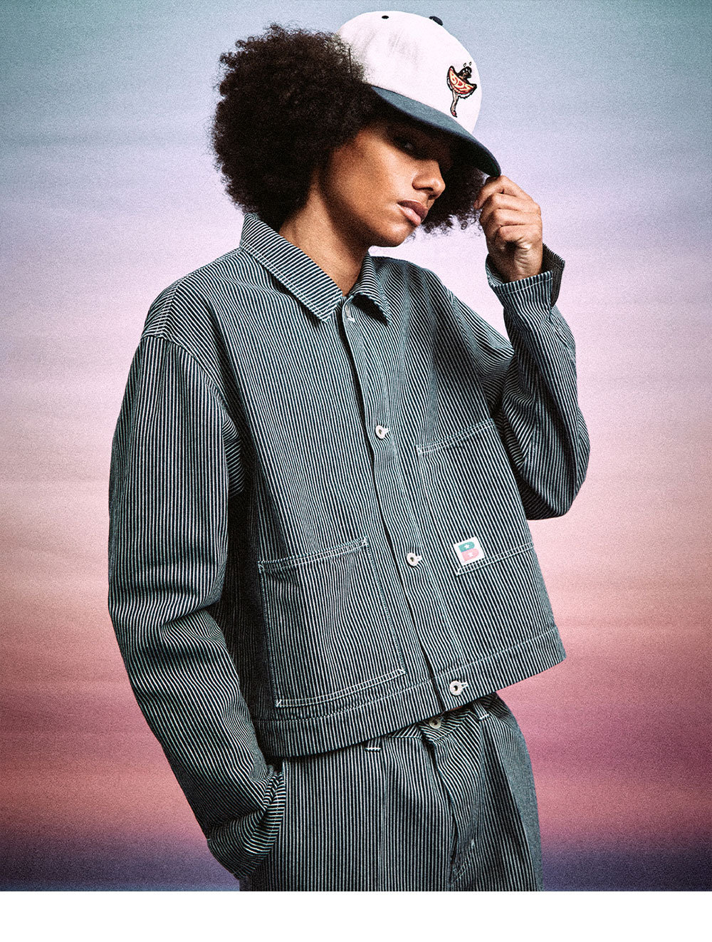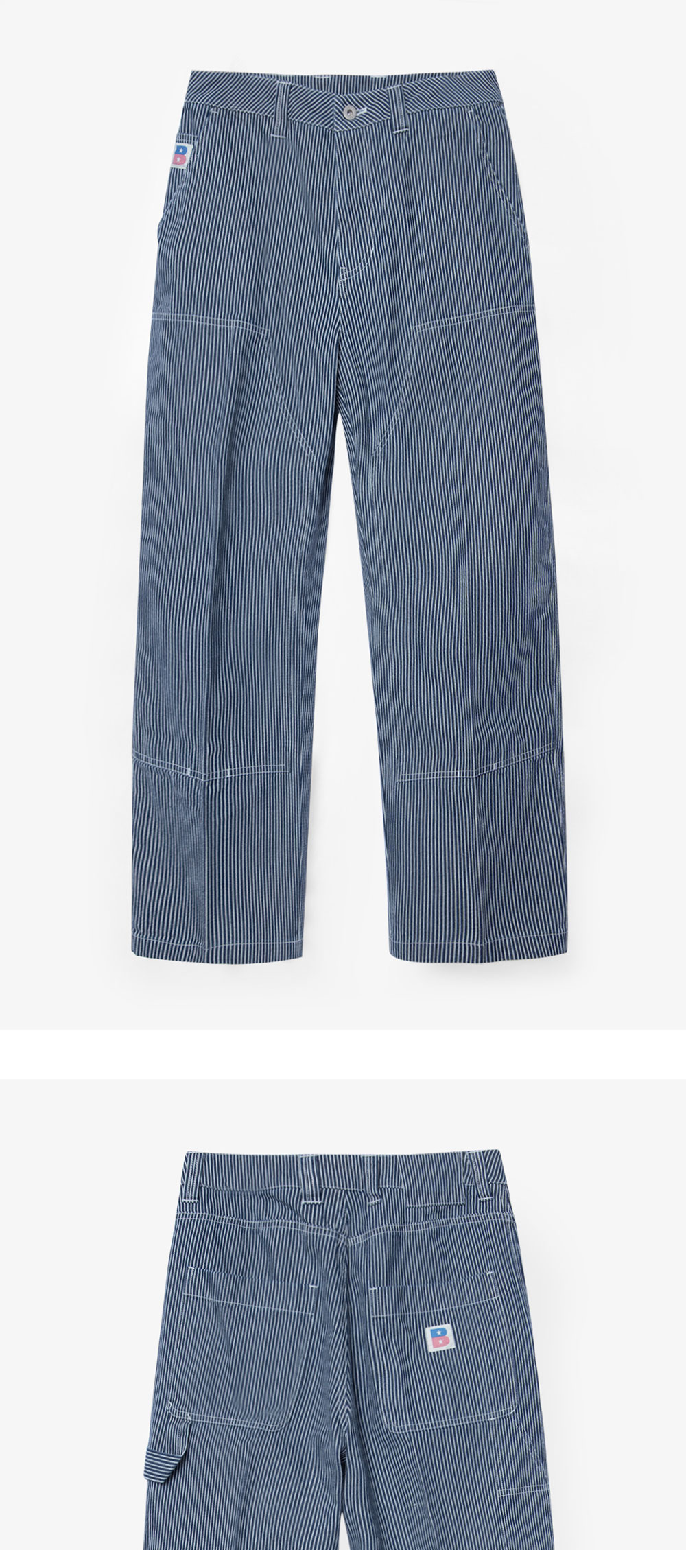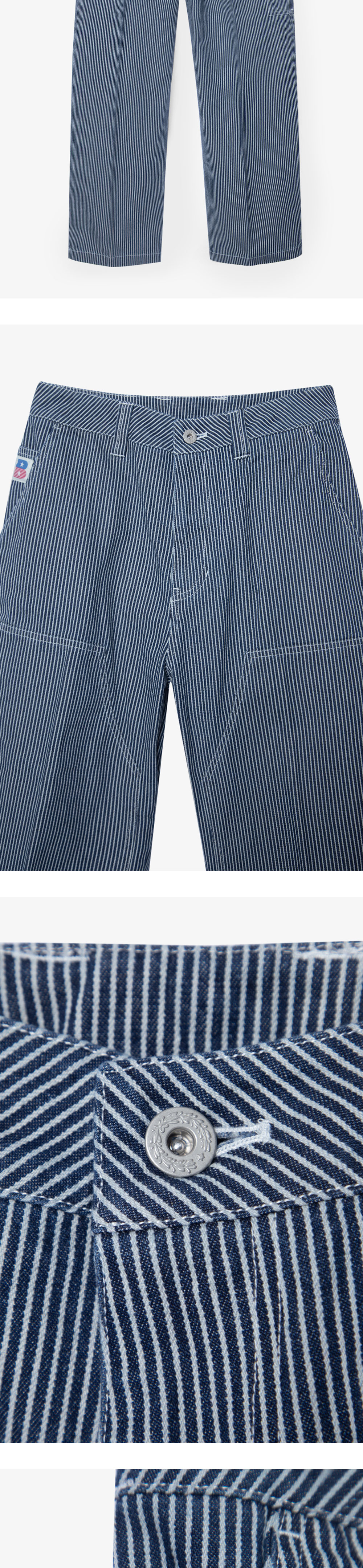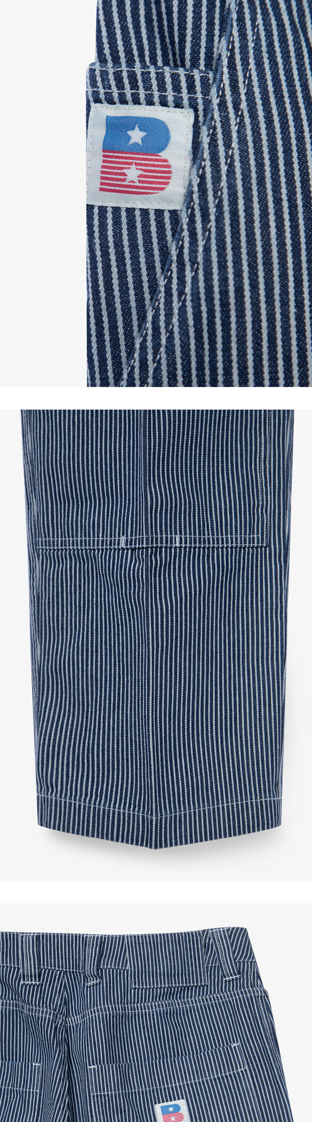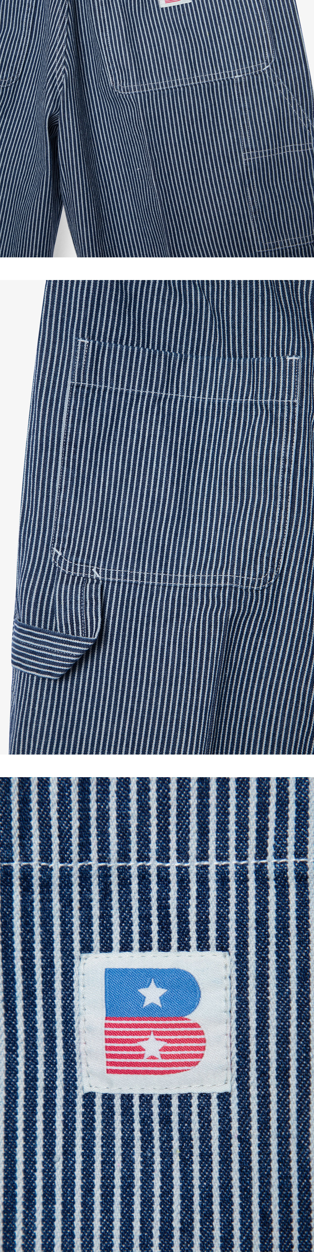 HICKORY CARPENTER DENIM은 과거 1920년대 철도 작업원들이 주로 착용하였던 히코리 원단을 사용하였으며, 인디고 실과 하얀 실로 짜여진 히코리 원단의 매트한 텍스처와 탄탄한 내구성을 느낄 수 있는 팬츠입니다. 군더더기 없는 깔끔한 실루엣으로 목수나 도장공이 작업을 위해 착용하였던 워크 팬츠를 모티브로 그들이 공구 포켓 혹은 망치를 걸 수 있는 루프 등의 워크 웨어 디테일을 담아냈습니다. 또한 전후면 B 로고 자수를 삽입하여 포인트를 주었으며, 단독 혹은 히코리 데님 재킷과 셋업으로 착용할 수 있어 간절기 시즌 활용도가 높은 아이템입니다. 여유로운 실루엣으로 출시된 제품입니다.