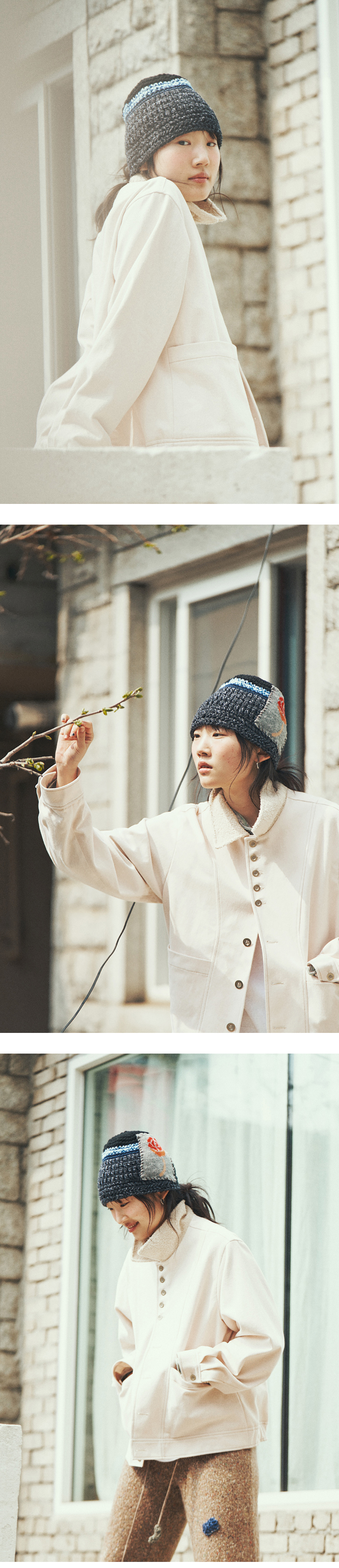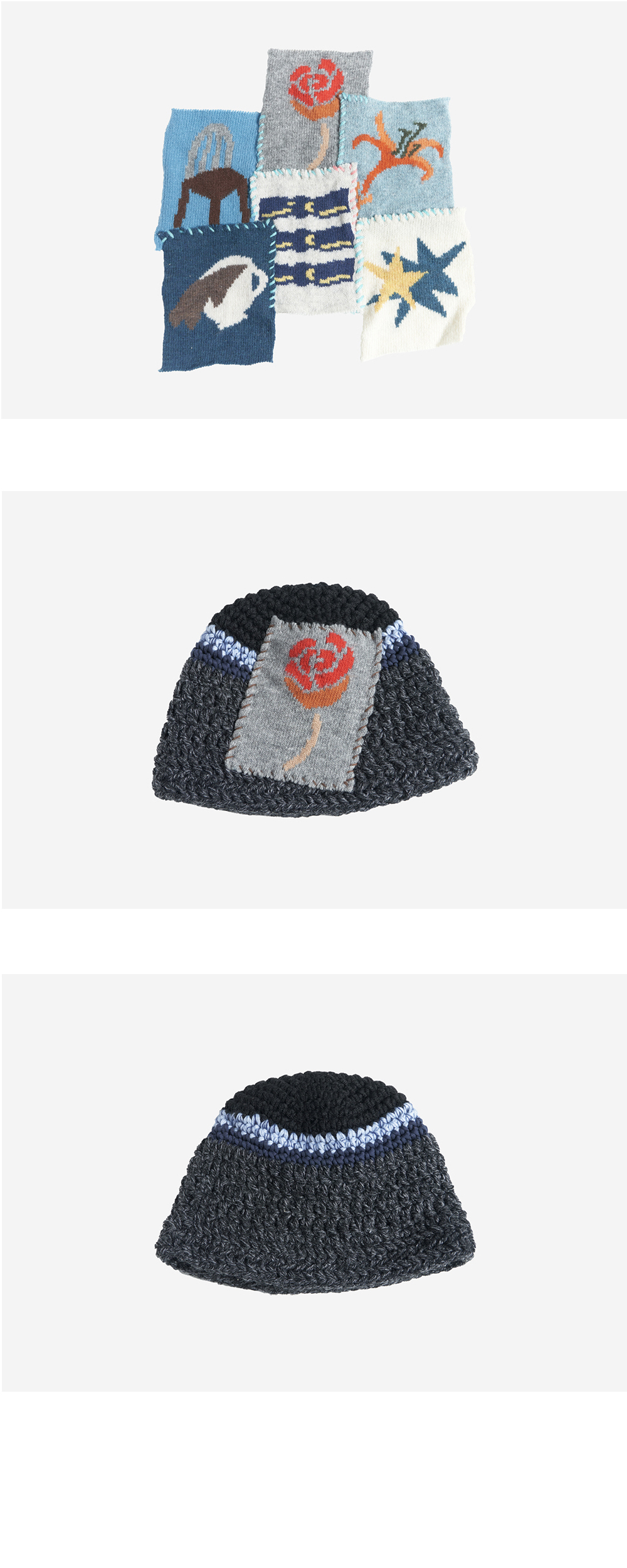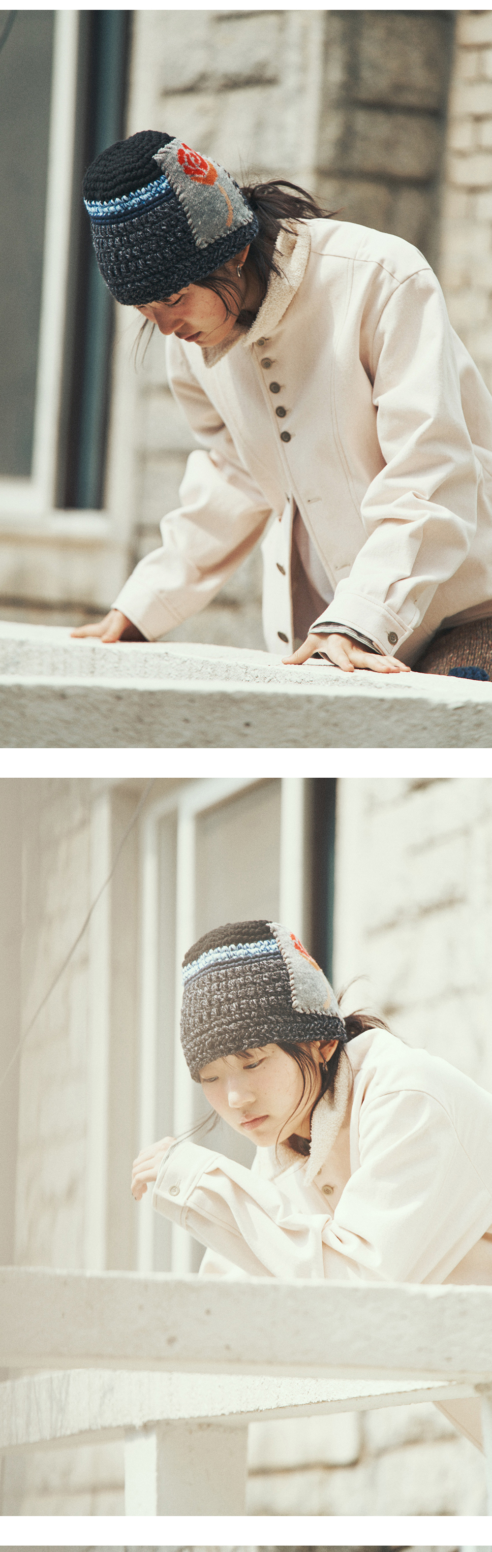 * 100% 핸드메이드입니다. * 미수아바흐브의 새로운 시그니처 버킷 햇입니다. * 니트 패치를 핸드 스티칭 한 디테일이 포인트입니다.