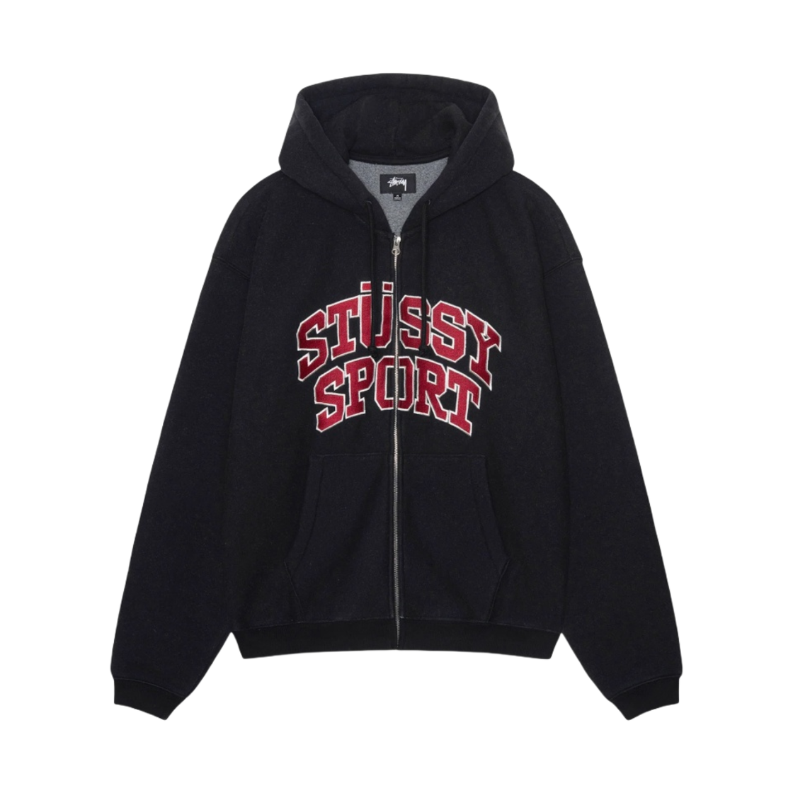 스투시 스포츠 후드 집업 워시드 블랙