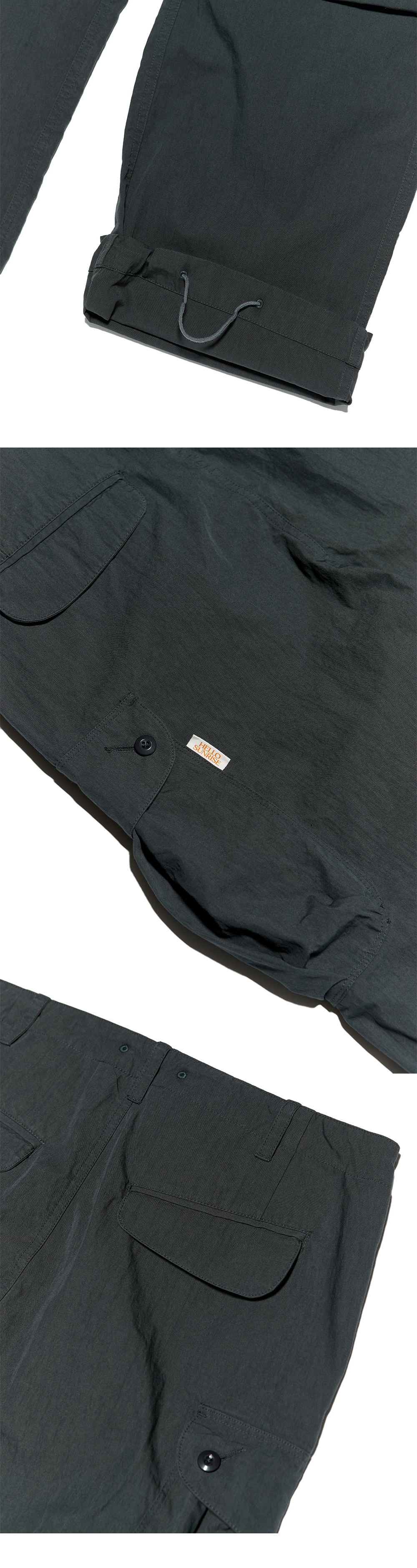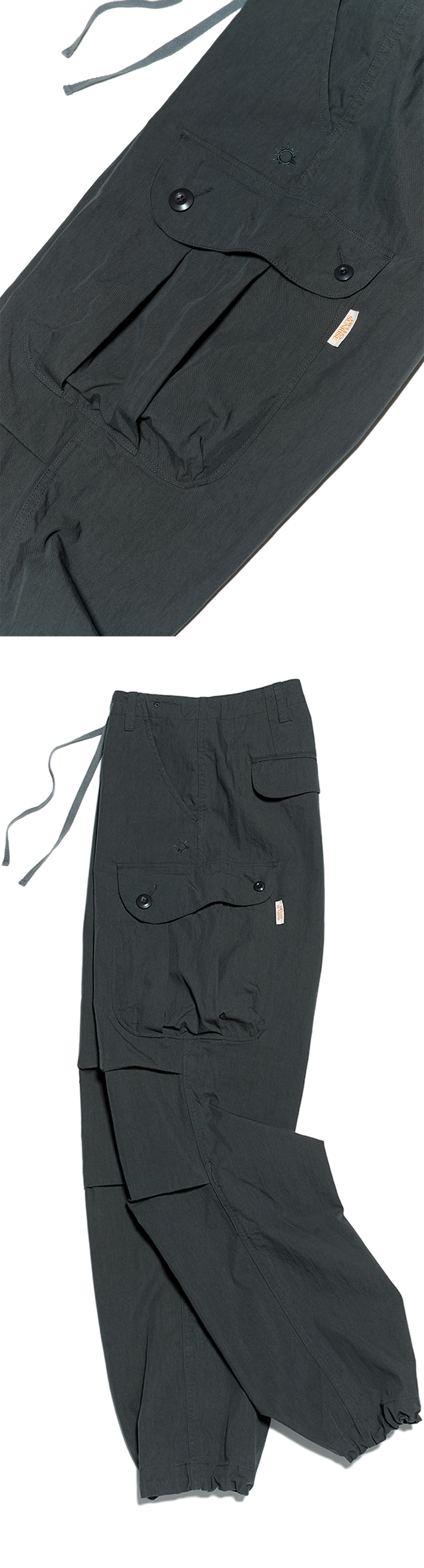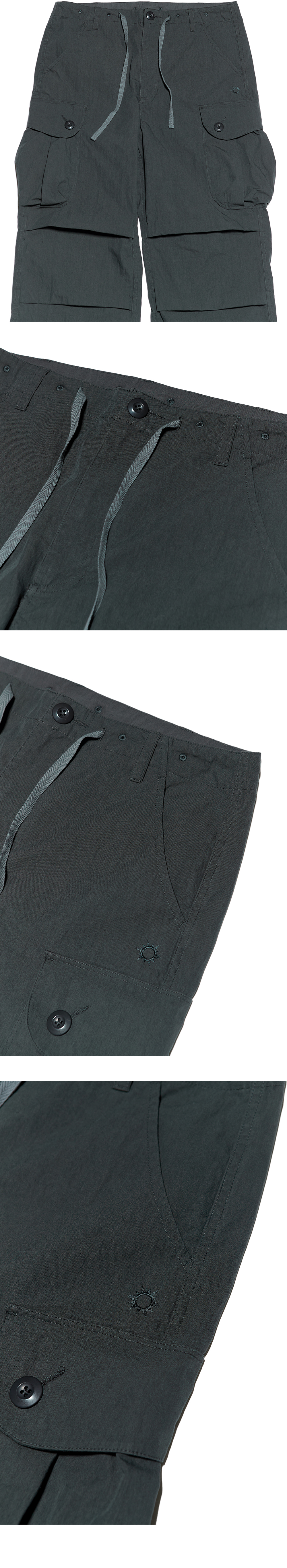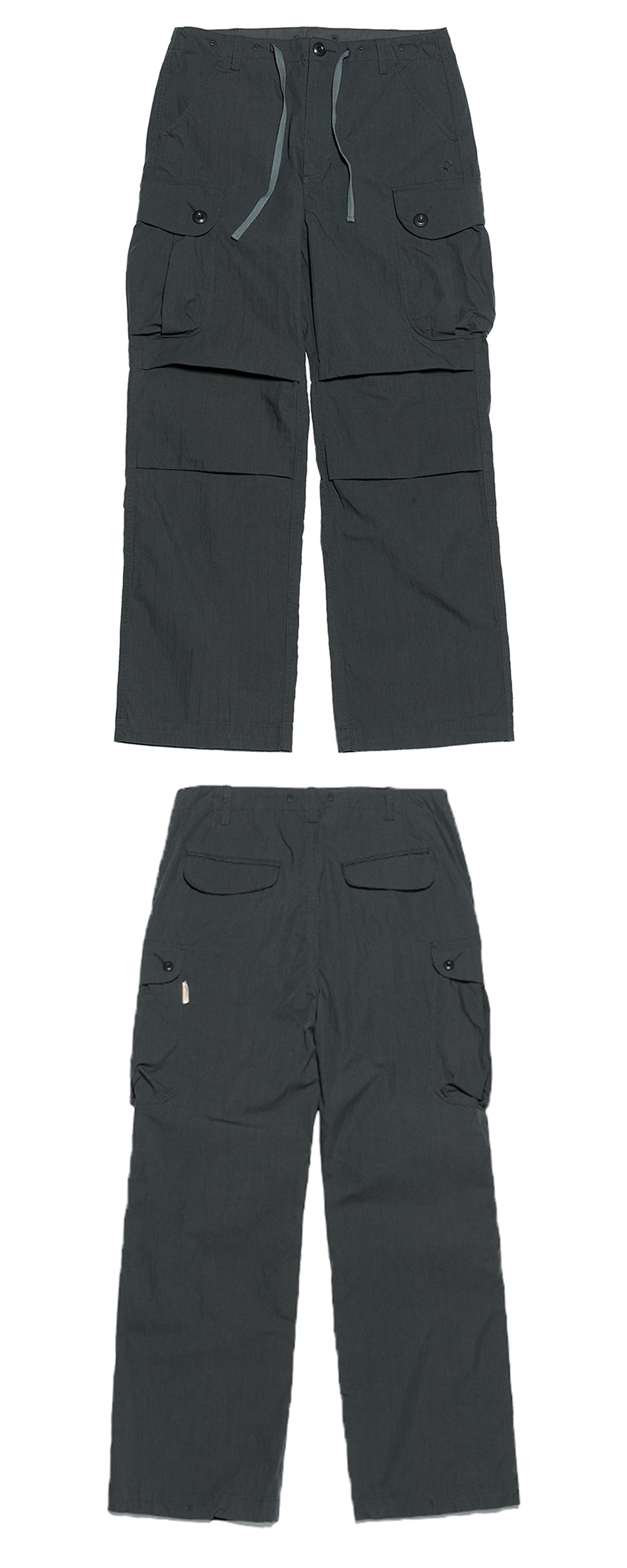 6개의 포켓이 적용된 루즈핏의 카고팬츠입니다. - Cotton / Nylon 소재의 카고팬츠 - 6개 포켓 디테일 - 높은 활동성의 무릎 2개 턱 디자인 - 허리와 밑단 사이즈 조절이 가능한 스트링 - 앞면 심볼 자수처리 - 편안한 착용감의 루즈핏 실루엣