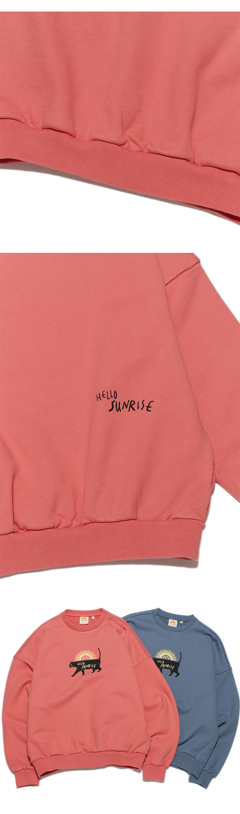 헬로선라이즈 캣 로고 그래픽이 전면에 프린팅 된 스웻셔츠입니다. - 양쪽 사이드 포켓 2개 - 후면에 타이포 그래픽 프린팅 - 편안한 착용감의 루즈한핏 실루엣