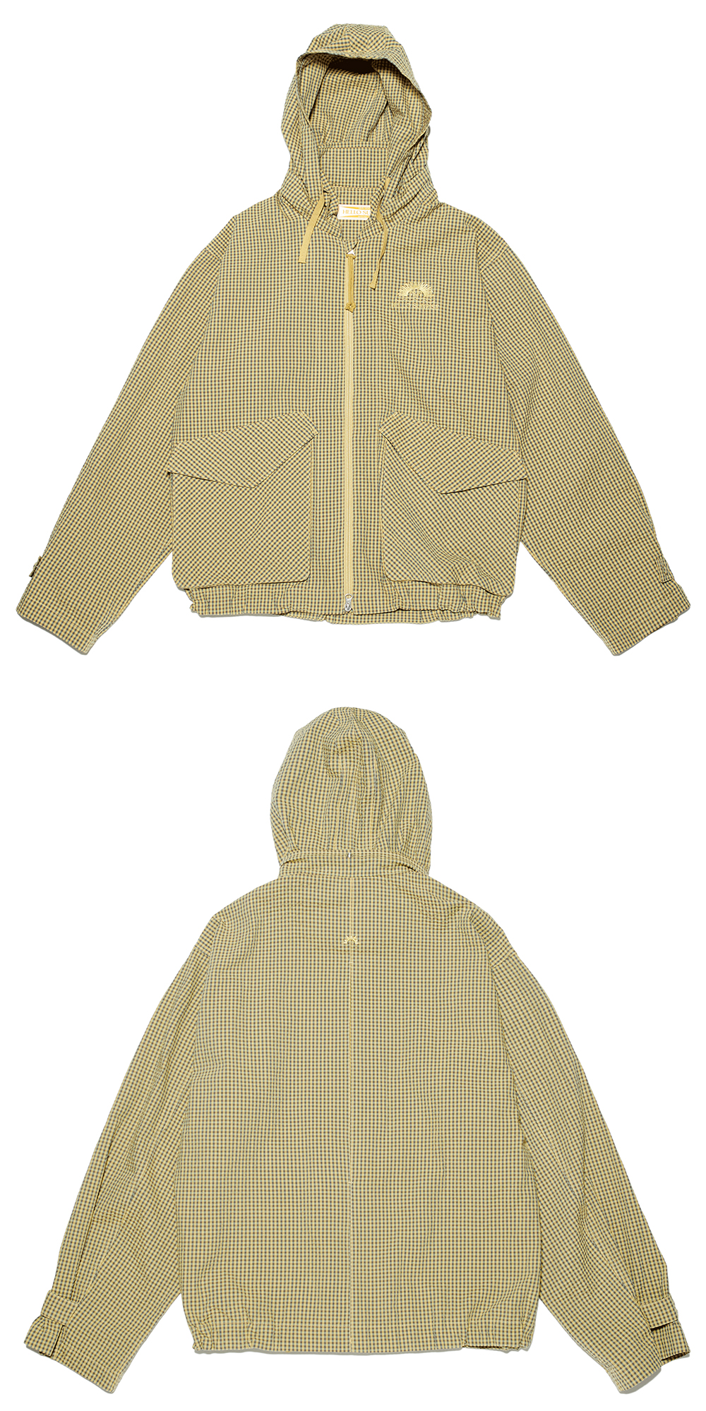 헬로우선라이즈 로고가 자수처리 된 짚업 후디자켓입니다. - 투톤 Gingham 체크 소재의 고급 일본 원단 사용 - 오가닉 코튼을 사용한 서스테이너블 소재 / 코튼 특유의 부드러움과 탄력감이 특징 - 전면 포켓 2개 / 히든 포켓 1개 - 내장된 후드로 높은 활용도 - YKK 2Way Zipper 사용 - 밑단 스트링 조절 / 소맷단 사이즈조절 스트랩 스냅 처리 - 가슴 / 등판 톤앤톤 로고 자수처리 - 편안한 착용감의 루즈한핏 실루엣
