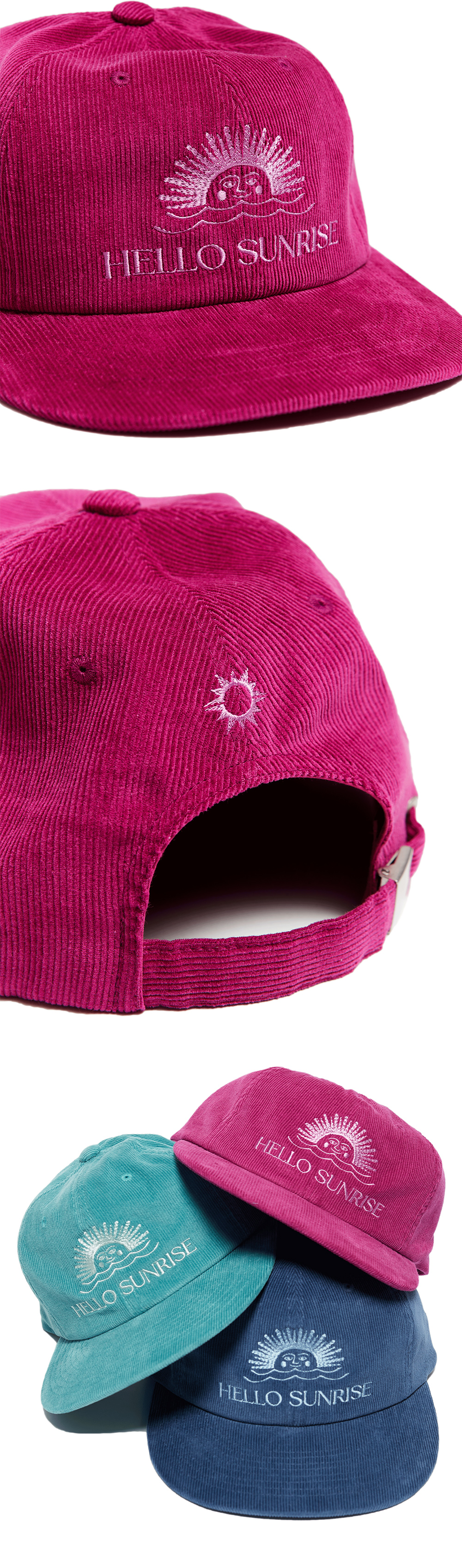 10월 30일(수) 예약발송 상품입니다. 헬로선라이즈 OG 로고 그래픽이 자수로 들어간 6패널 캡입니다. 코듀로이소재로 제작되어 3계절 착용이 가능하며, 뒤판은 태양 심볼을 자수 처리하여 포인트를 주었습니다. * 원단 특성상 기존 제품보다 모자 깊이가 5mm 깊게 제작되었습니다. * 개인적인 취향에 따라서 챙을 구부려서 착용해주시길 바랍니다.