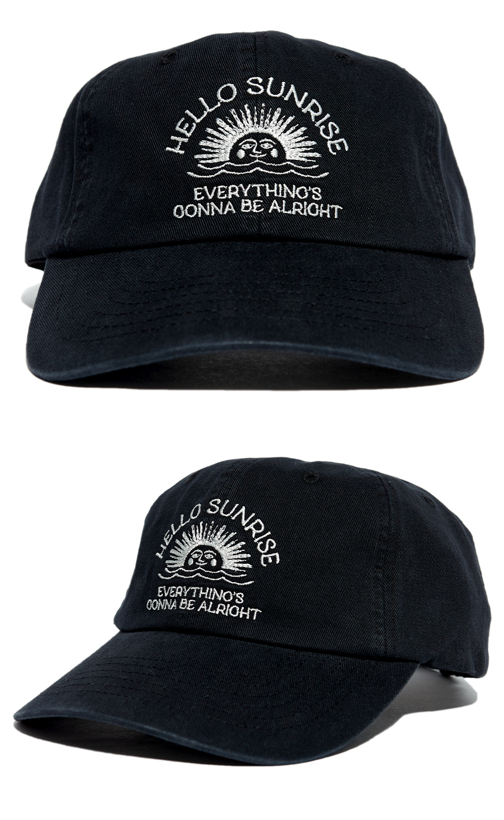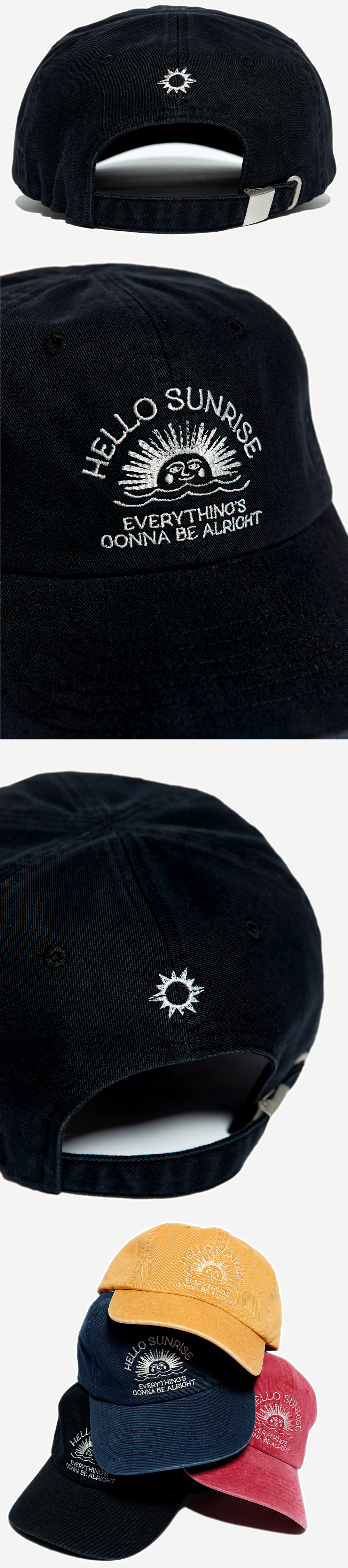 헬로선라이즈 아치 로고 그래픽이 자수로 들어간 커브드 볼캡입니다. - 워싱 가공으로 빈티지한 무드 - 뒤판 Hello Sunrise 심볼 자수 처리
