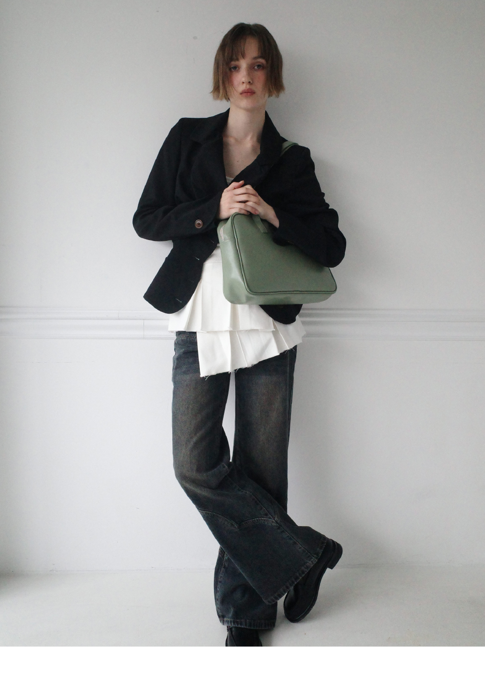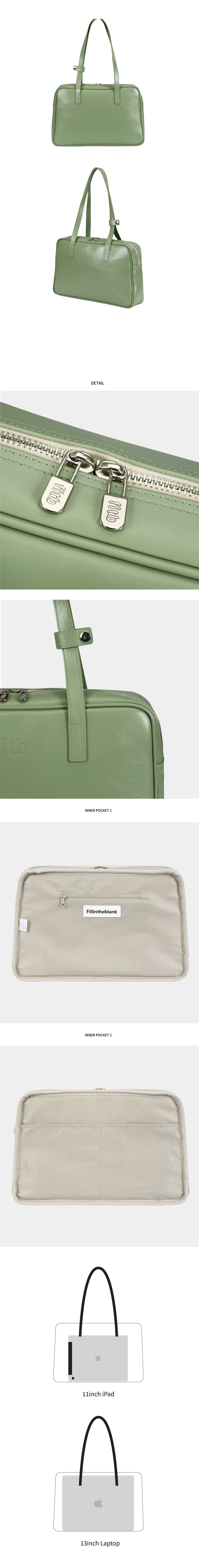 13인치 노트북까지 수납 가능하며, 내구성이 강하고 은은한 광택감이 고급스러운 크랙 레더 소재를 사용하였다. 군더더기 없는 디자인으로 미니멀한 스타일링부터 컬러로 포인트를 주는 포인트 스타일까지 다양하게 매칭이 가능하다. 유틸리티 스냅을 사용하여 흘러내림을 최소화 하였다.