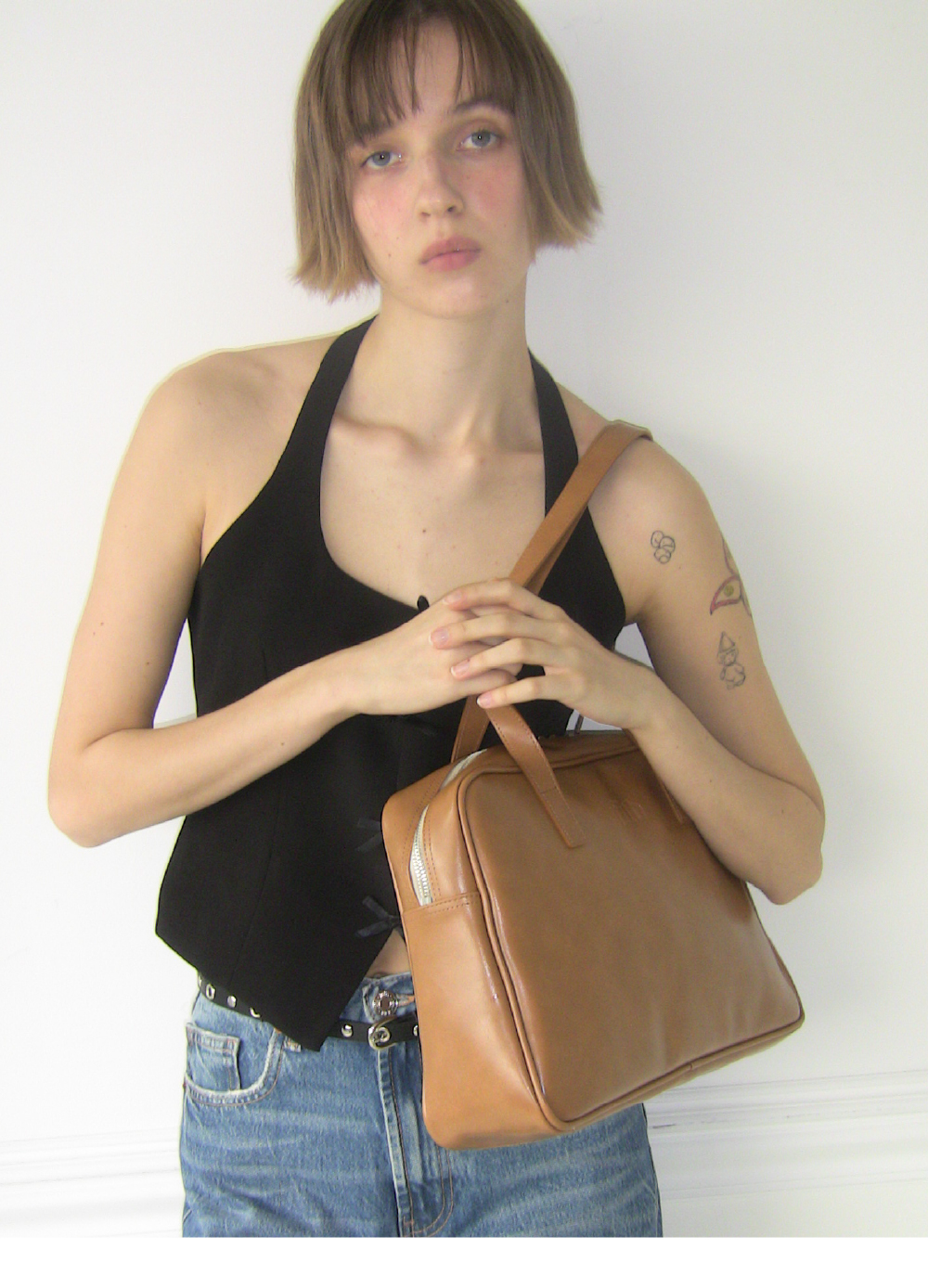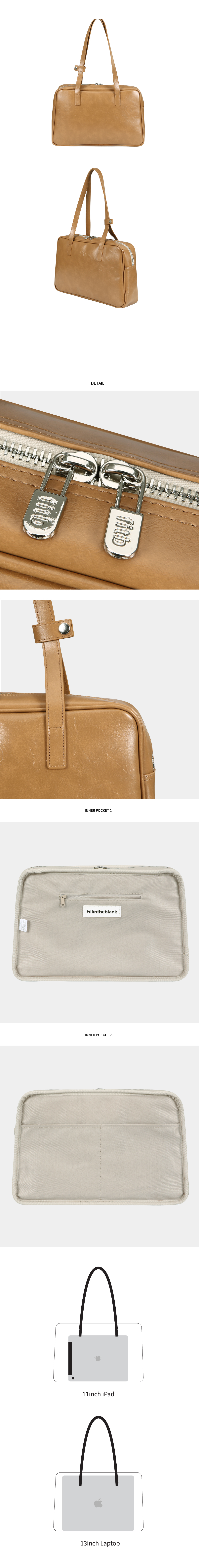 13인치 노트북까지 수납 가능하며, 내구성이 강하고 은은한 광택감이 고급스러운 크랙 레더 소재를 사용하였다. 군더더기 없는 디자인으로 미니멀한 스타일링부터 컬러로 포인트를 주는 포인트 스타일까지 다양하게 매칭이 가능하다. 유틸리티 스냅을 사용하여 흘러내림을 최소화 하였다.