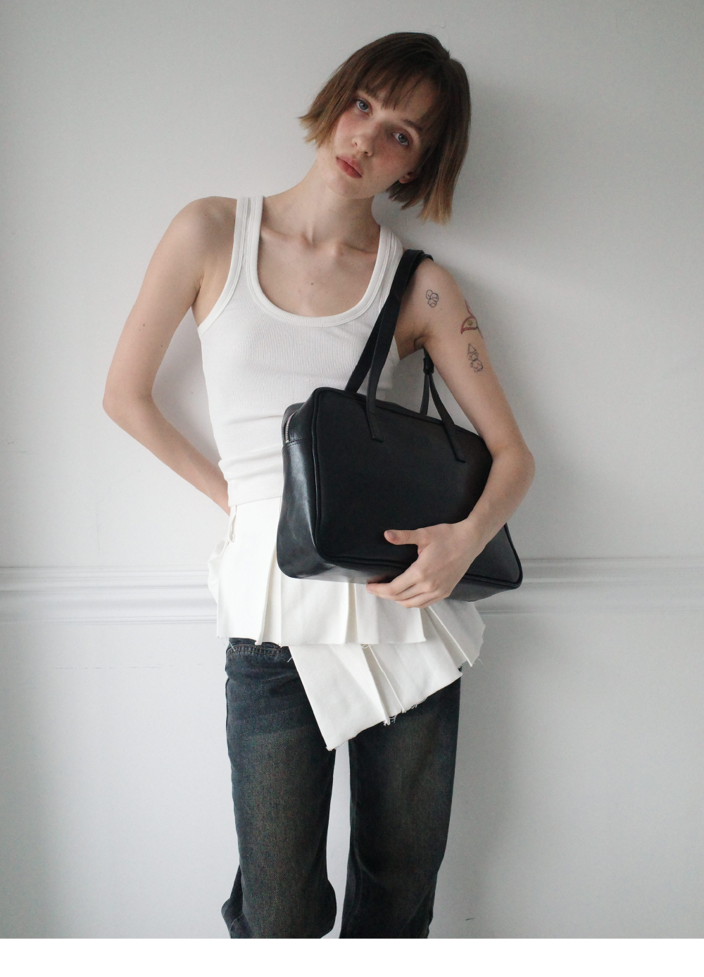 13인치 노트북까지 수납 가능하며, 내구성이 강하고 은은한 광택감이 고급스러운 크랙 레더 소재를 사용하였다. 군더더기 없는 디자인으로 미니멀한 스타일링부터 컬러로 포인트를 주는 포인트 스타일까지 다양하게 매칭이 가능하다. 유틸리티 스냅을 사용하여 흘러내림을 최소화 하였다.