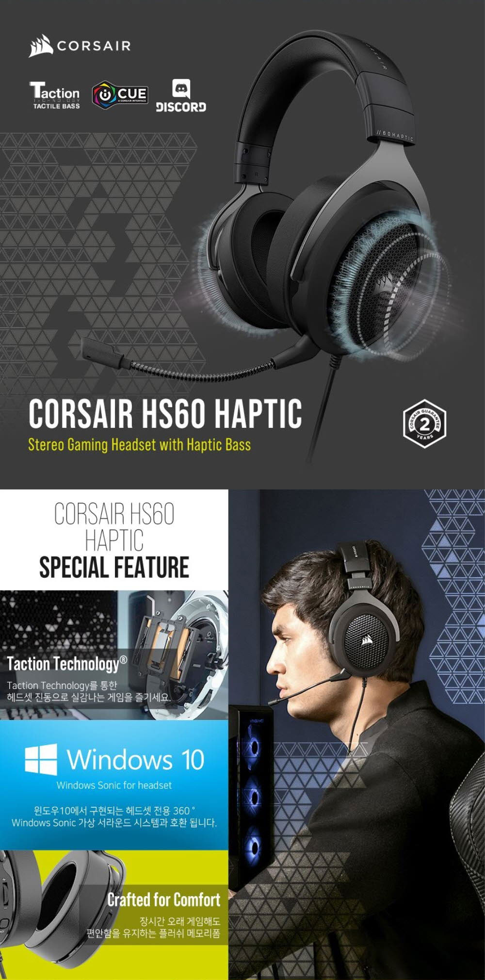 커세어 HS60 햅틱 스테레오 게이밍 헤드셋 카본