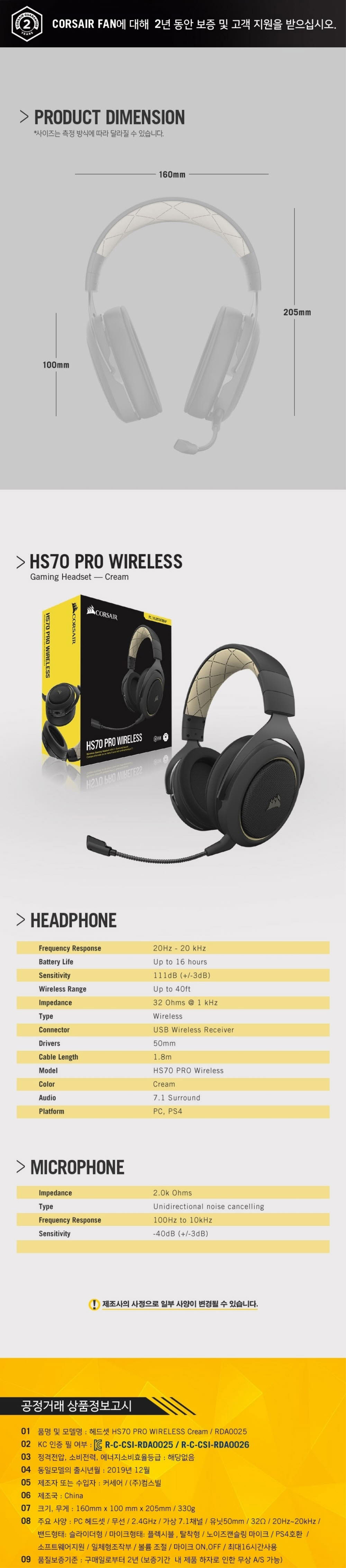 커세어 HS70 프로 무선 게이밍 헤드셋 크림