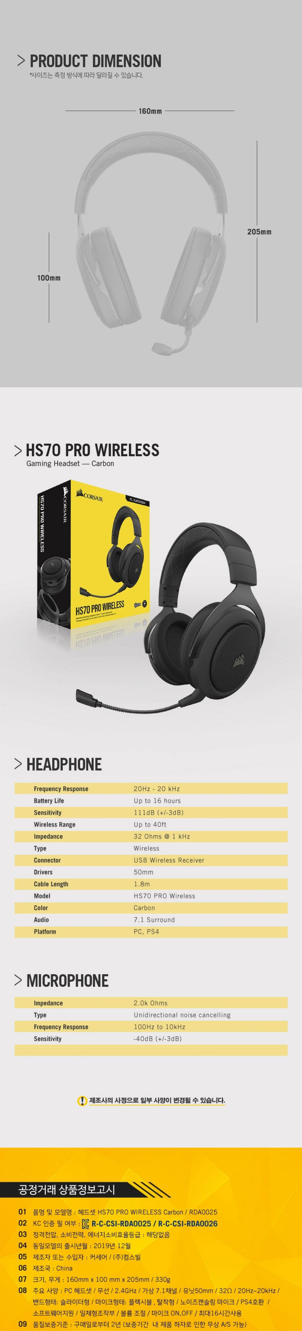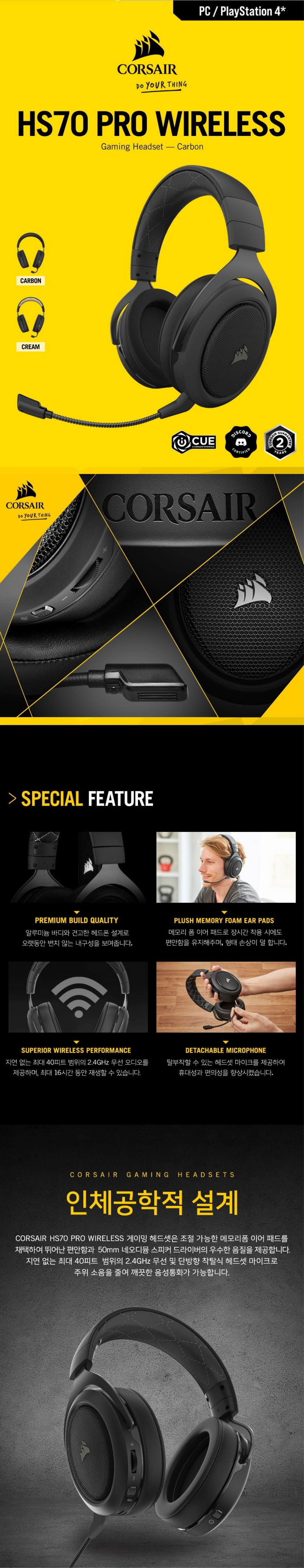 커세어 HS70 프로 무선 게이밍 헤드셋 카본