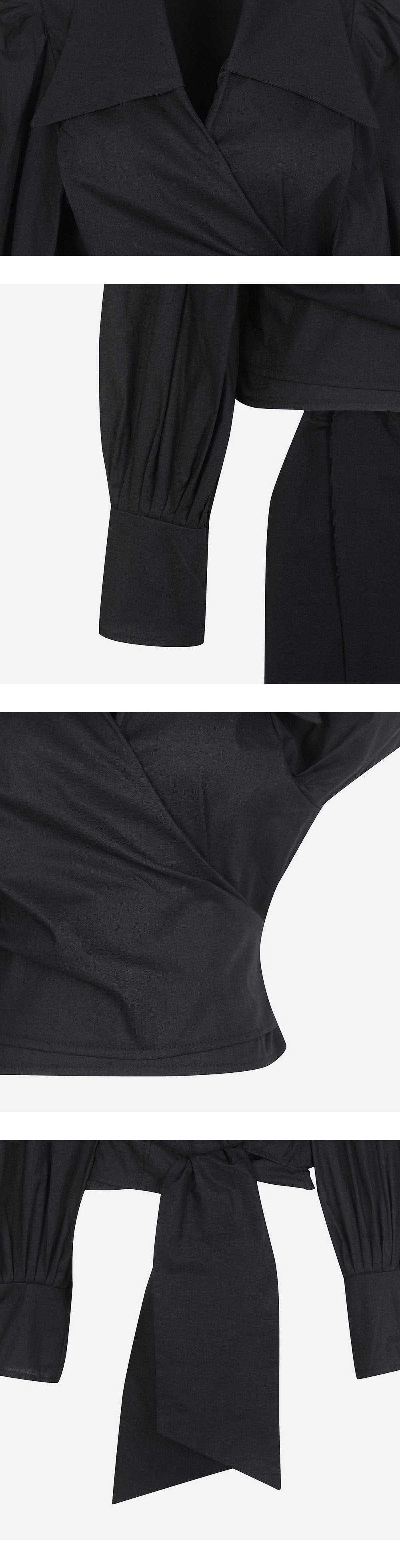 - 투웨이로 자유로운 연출 가능 - 풍성하고 우아한 롱 퍼프 소매 디자인 - 넓은 포인티드 칼라와 손목 커프스 포인트