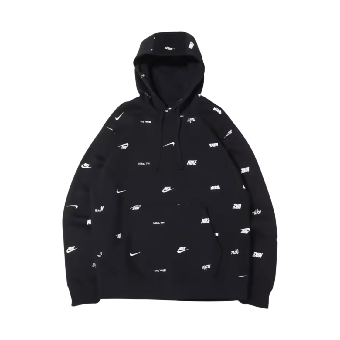 나이키 클럽 플리스 올오버 프린트 풀오버 후드 블랙 화이트 - 아시아