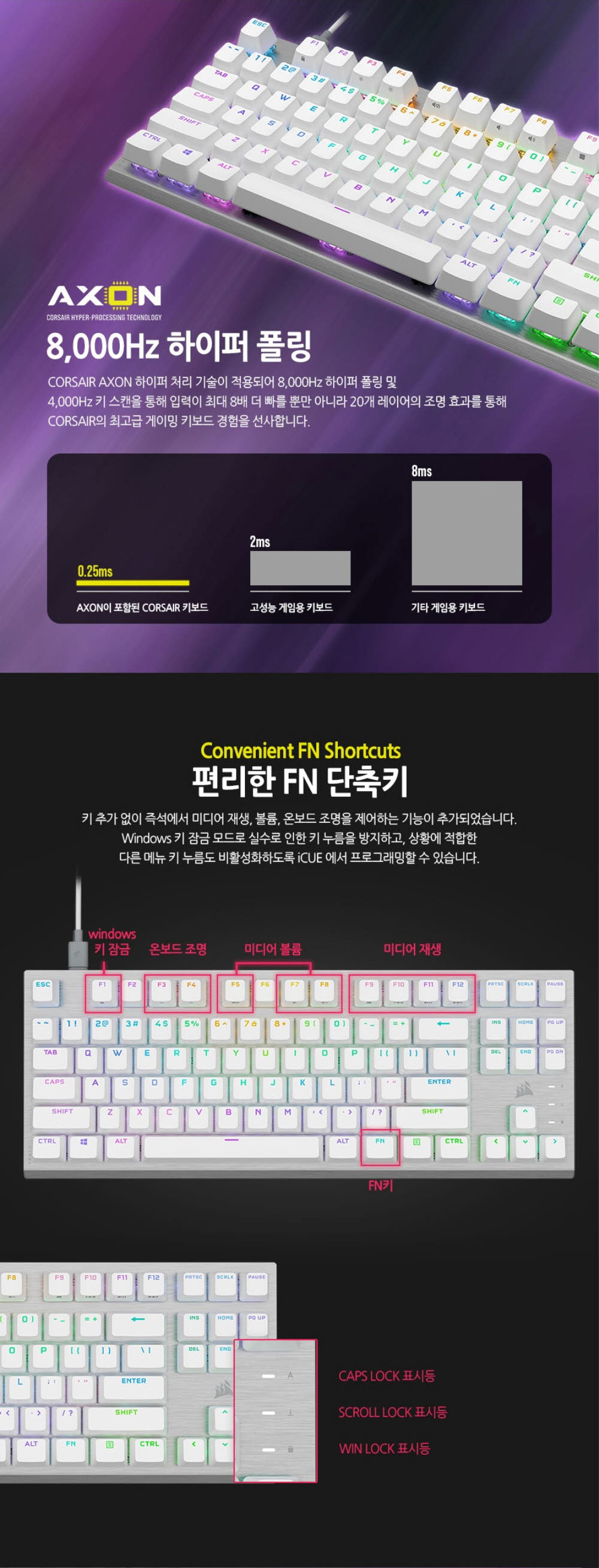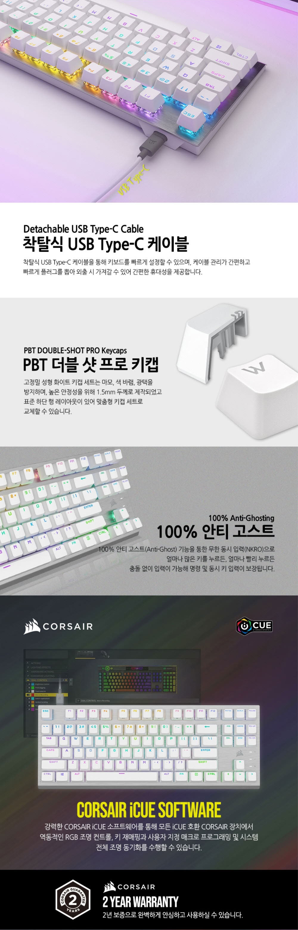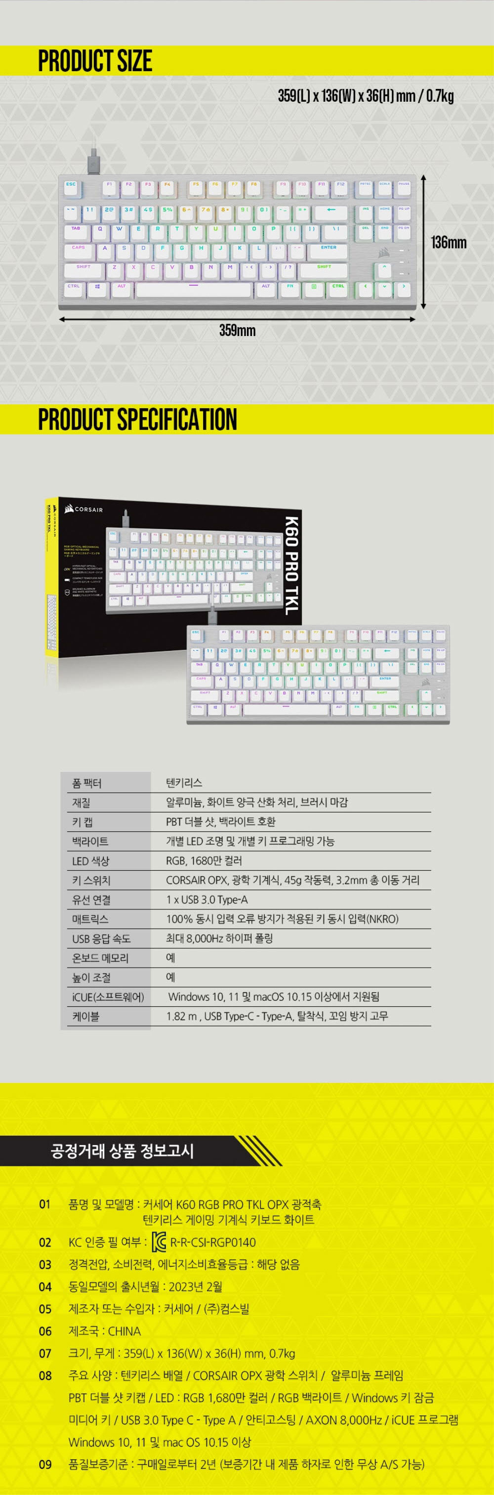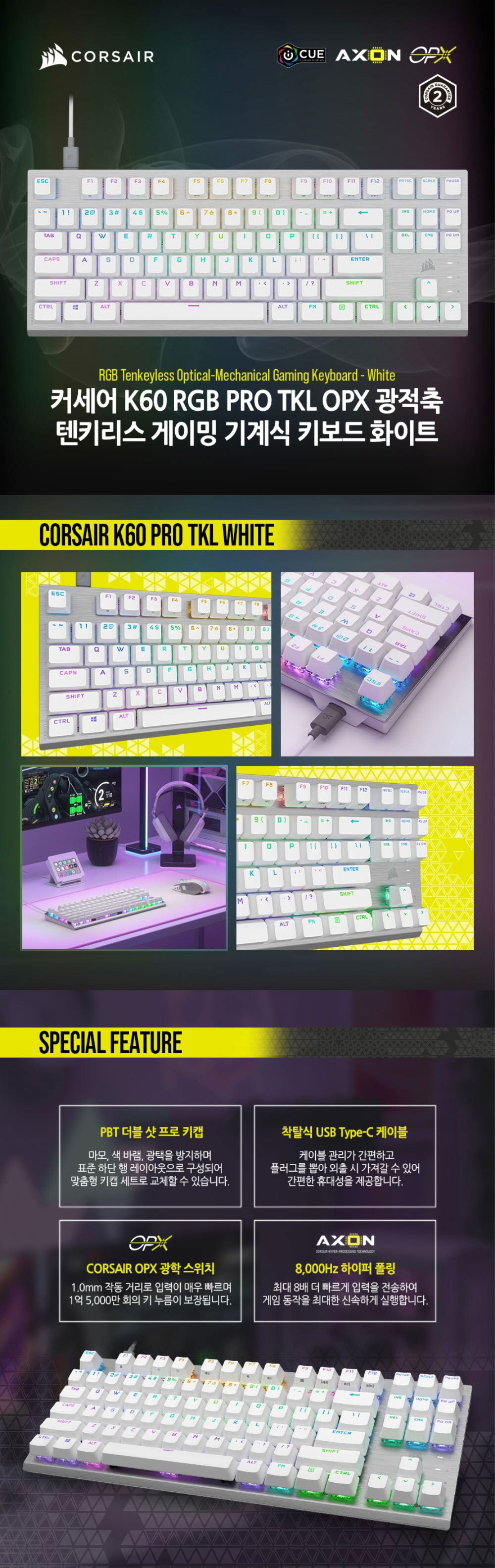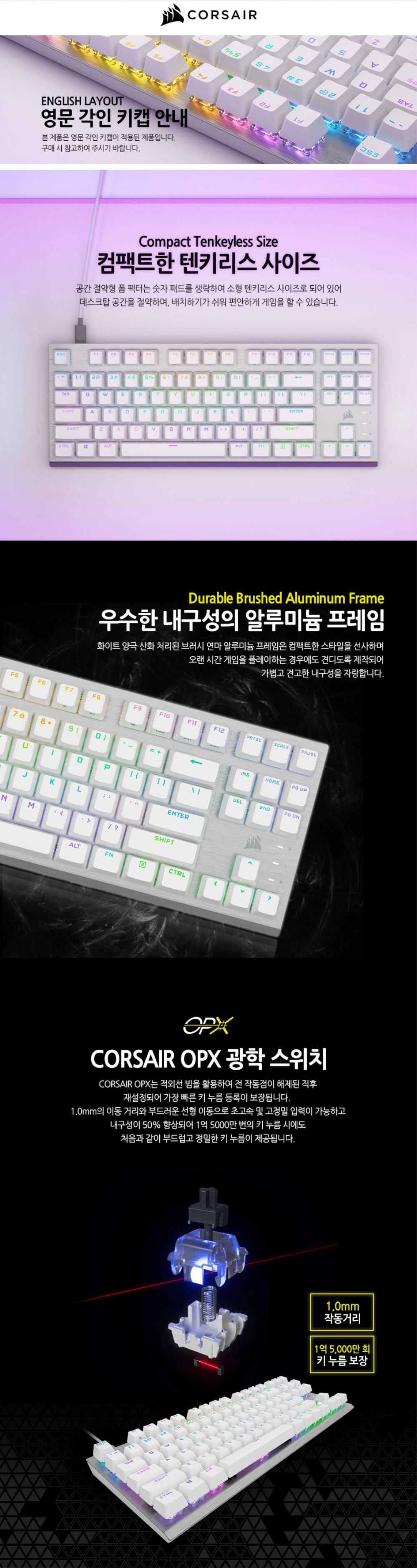 커세어 K60 RGB PRO TKL OPX 기계식 게이밍 키보드 화이트 (영문자판)