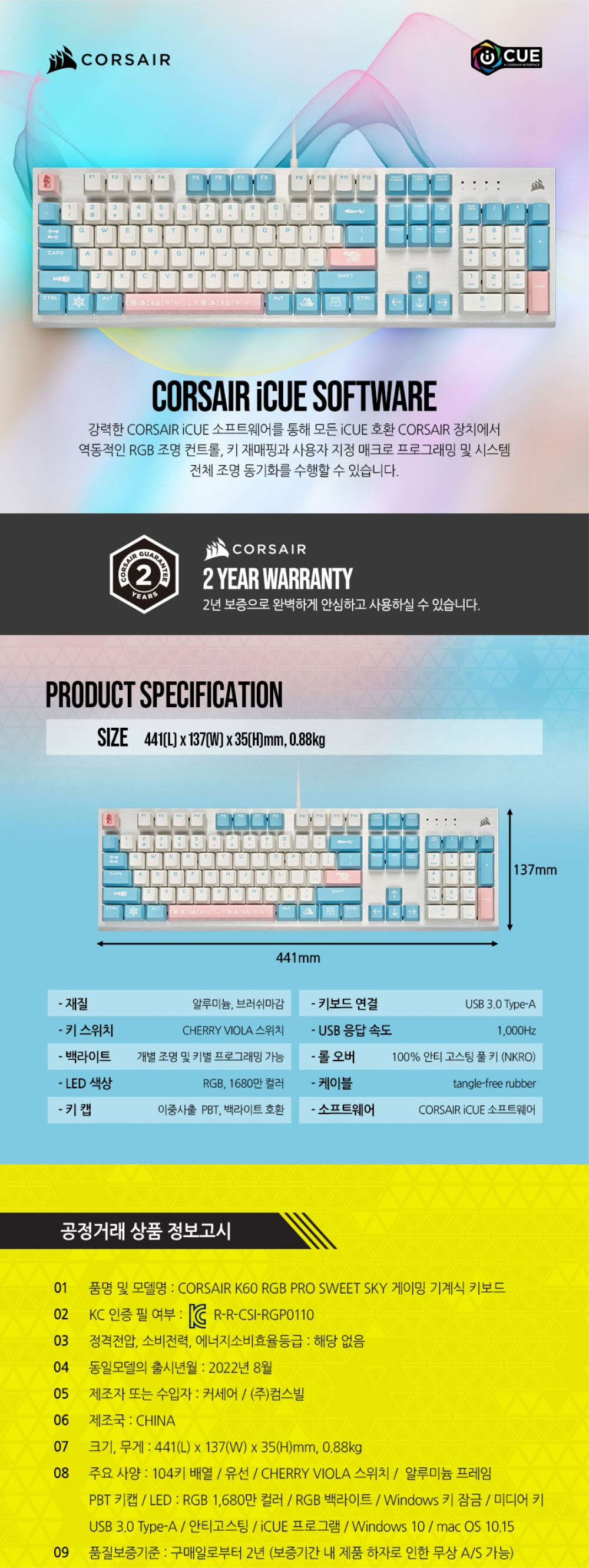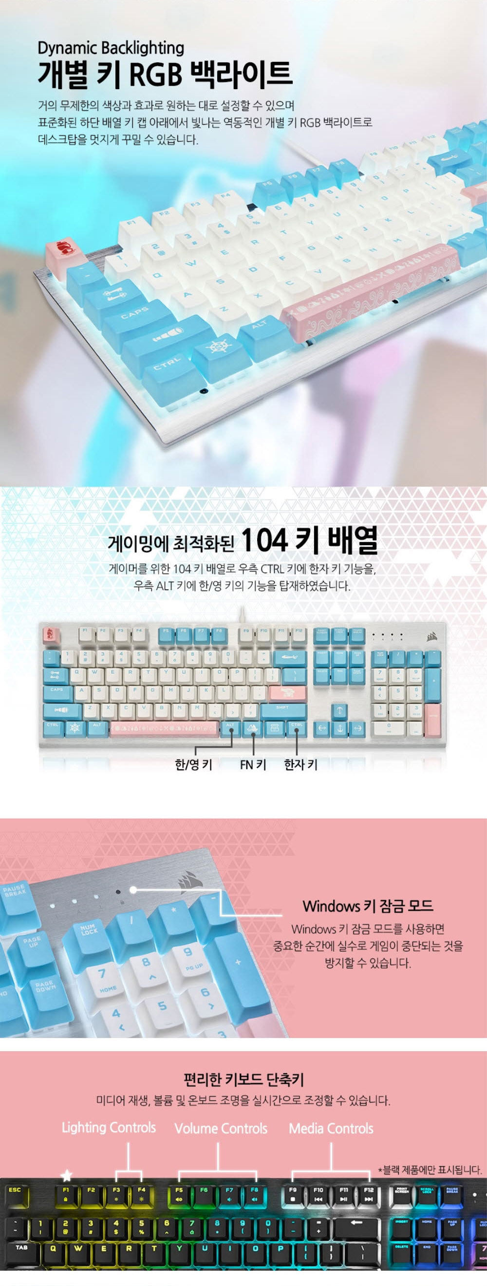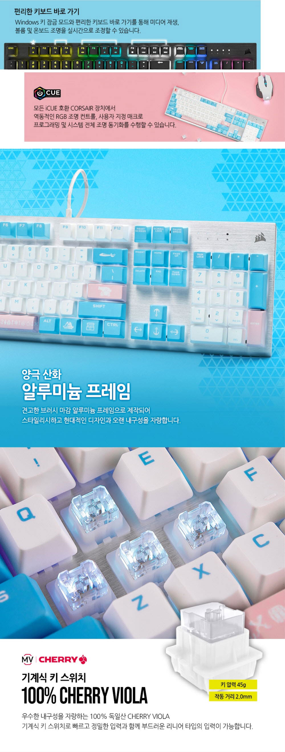 커세어 K60 RGB PRO SWEET SKY 기계식 게이밍 키보드 비올라축