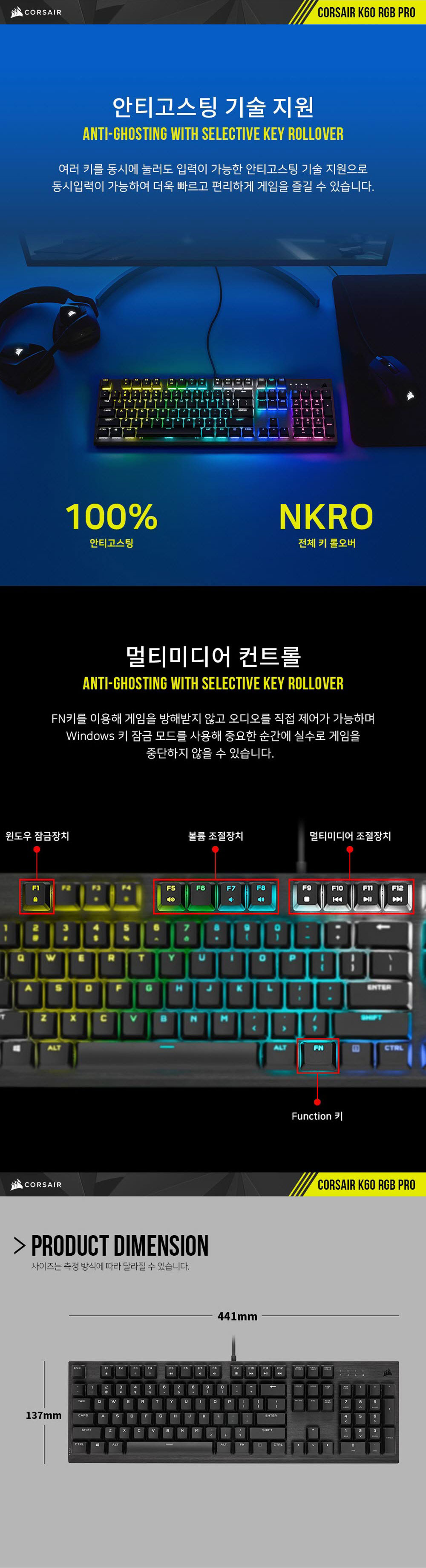 커세어 K60 PRO RGB 기계식 게이밍 키보드 비올라축