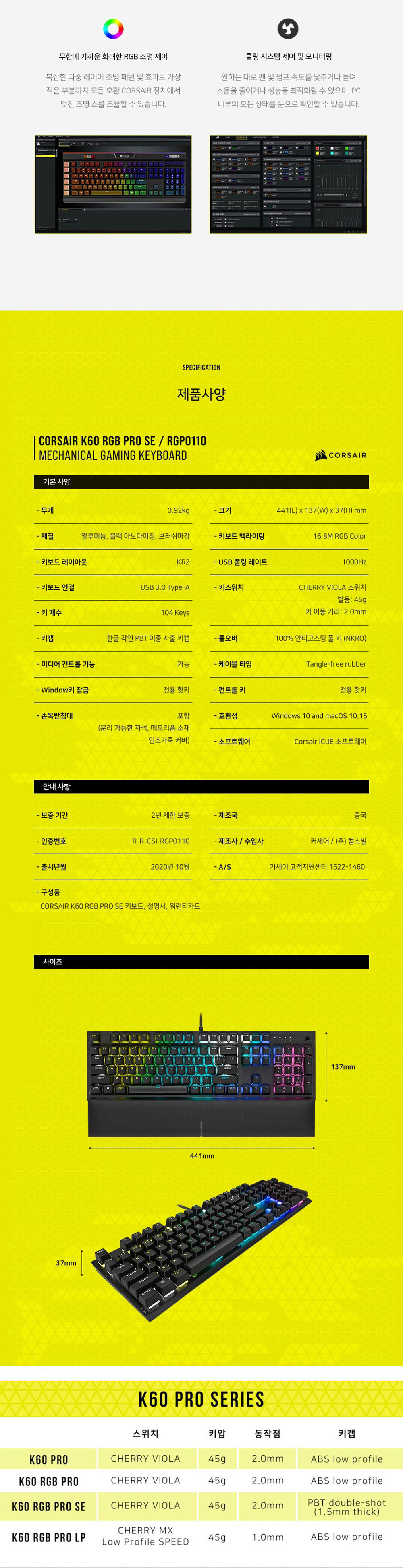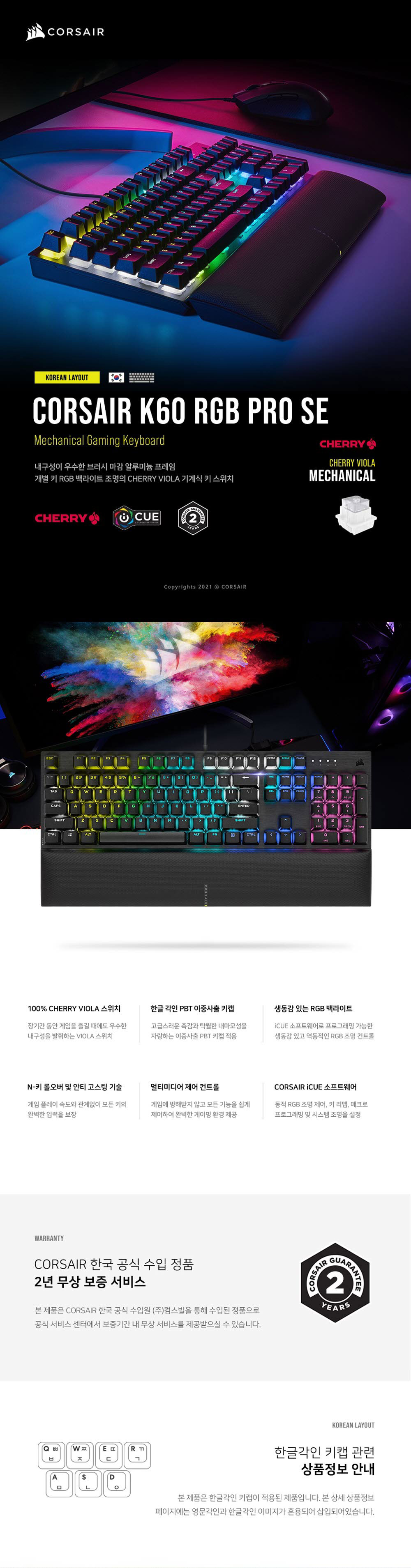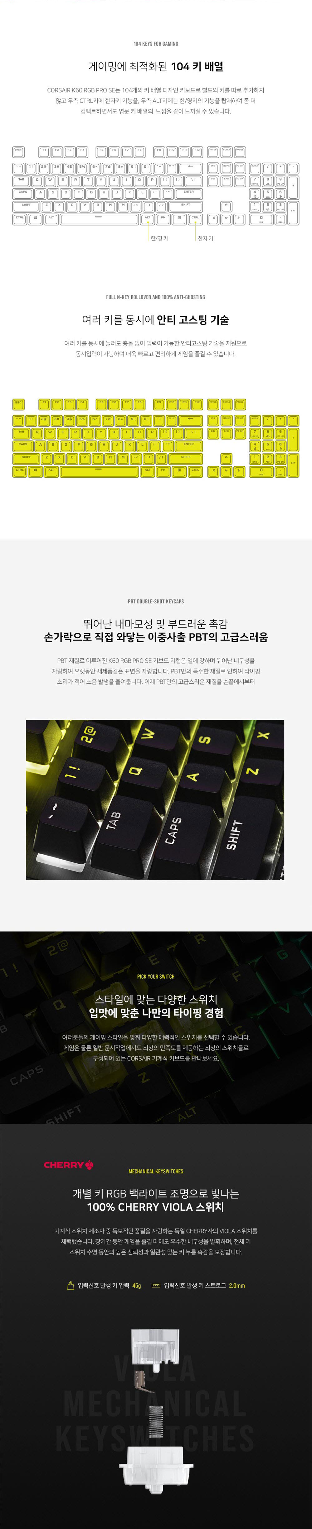 커세어 K60 PRO RGB SE 기계식 게이밍 키보드 비올라축