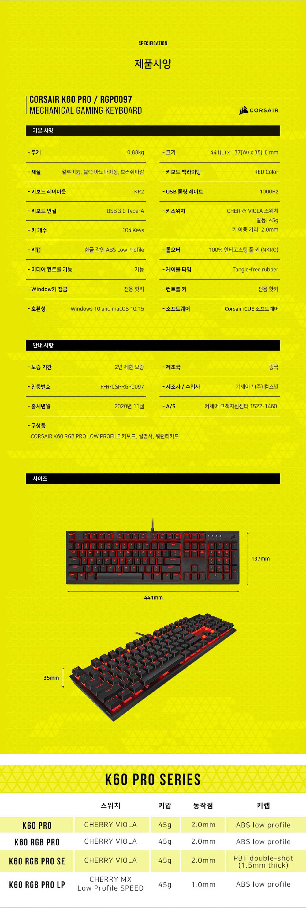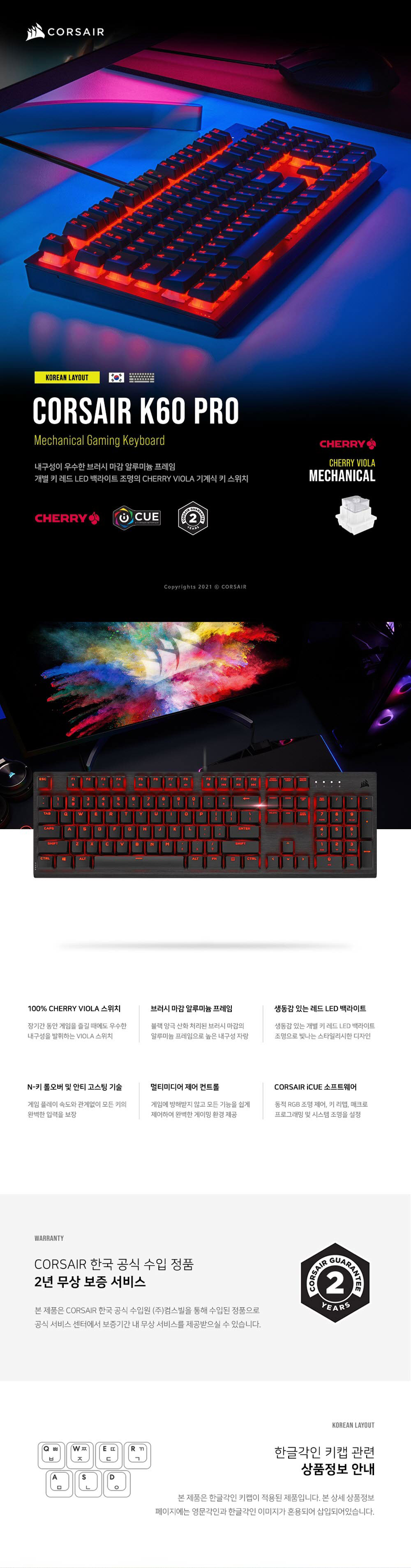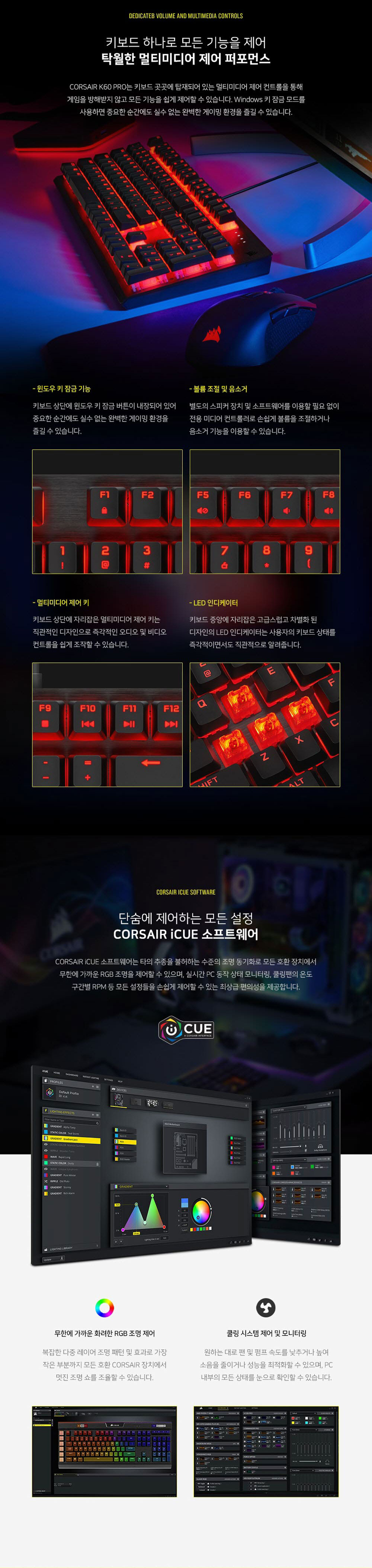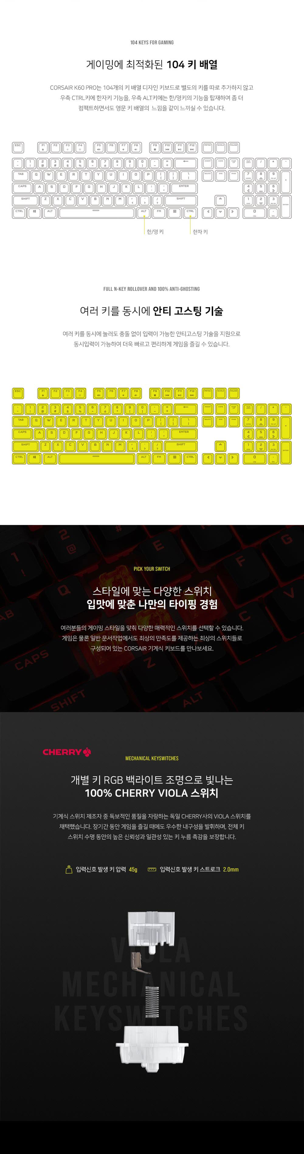 커세어 K60 PRO LED 게이밍 기계식 키보드 비올라축