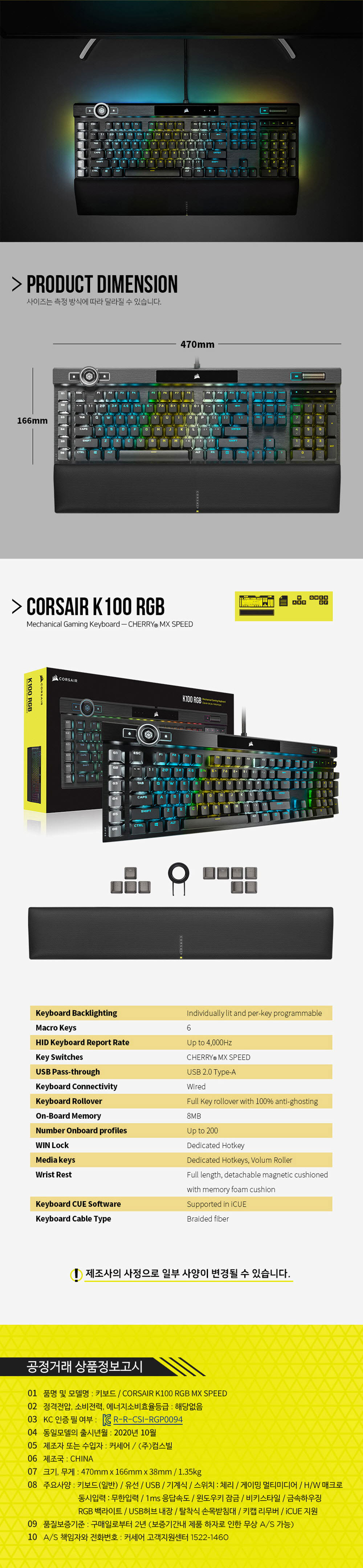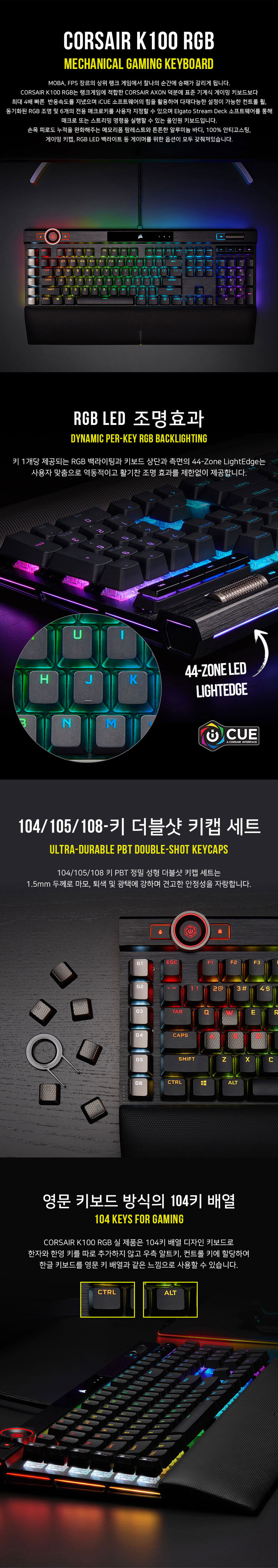 CORSAIR K100 RGB PBT Mechanical Gaming Keyboard SPEED (Korean)