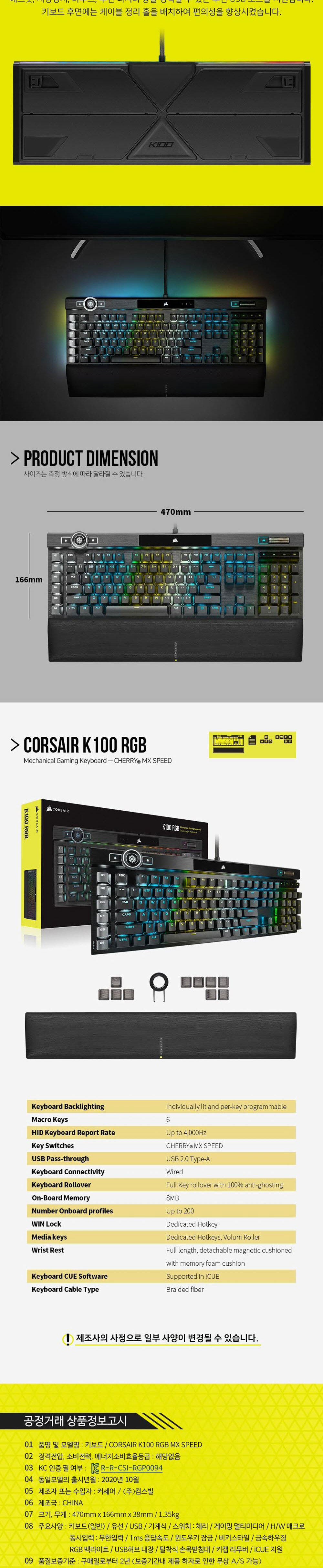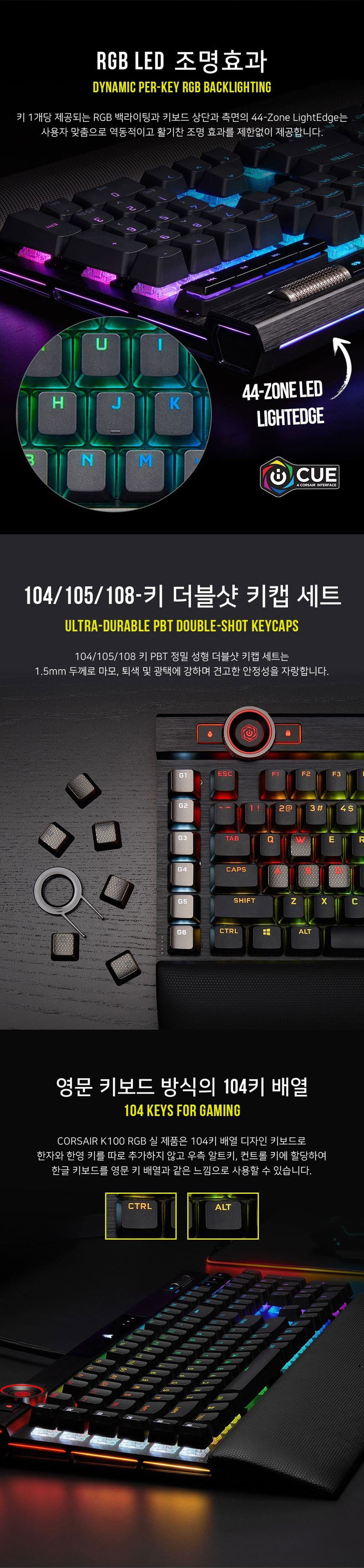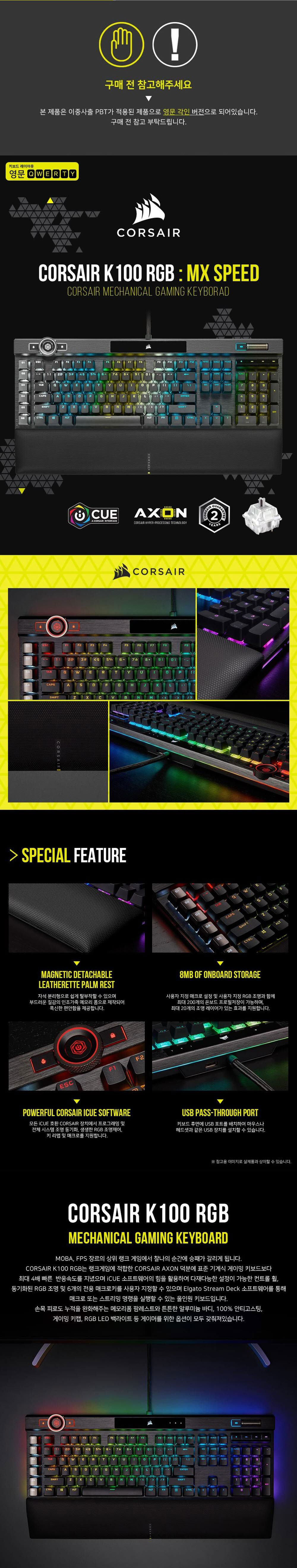 커세어 K100 RGB PBT 기계식 키보드 은축 (영문자판)