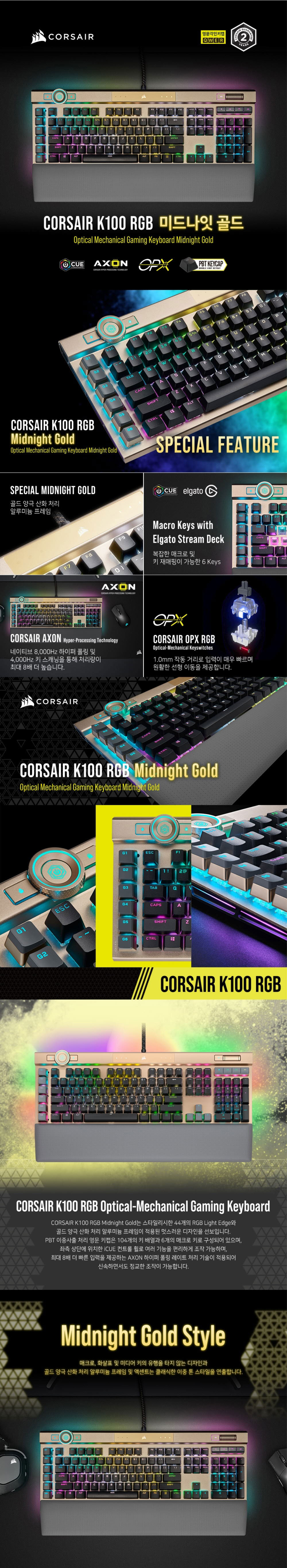 커세어 K100 RGB OPX 미드나잇 골드 기계식 게이밍 키보드 (영문자판)