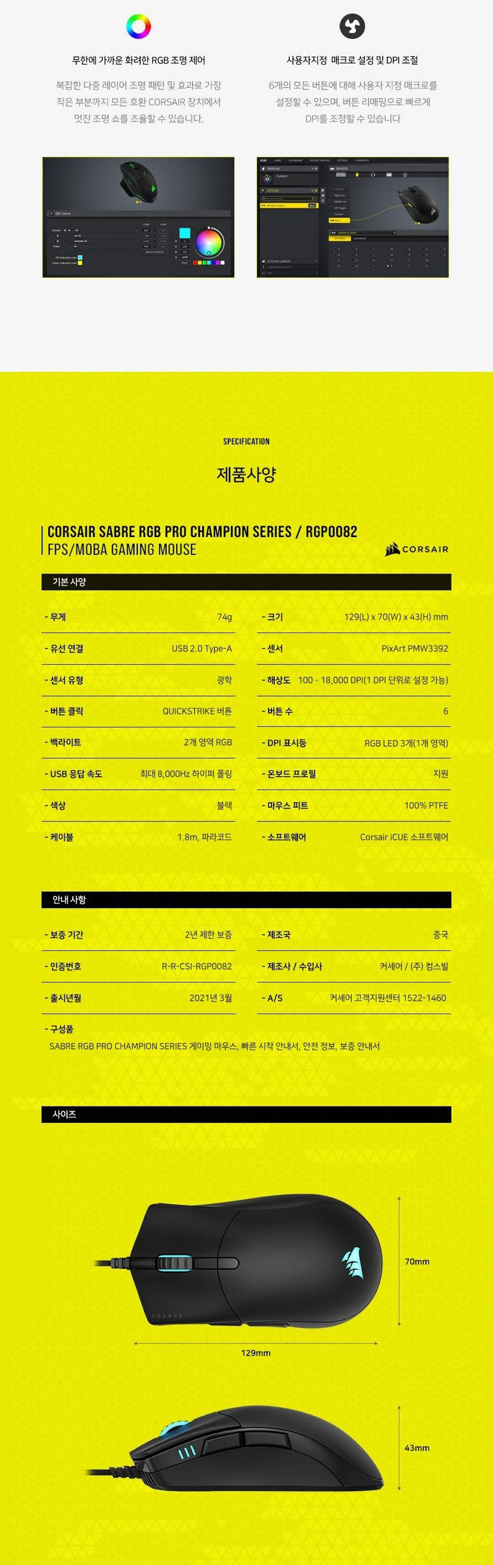 커세어 SABRE RGB PRO 게이밍 마우스