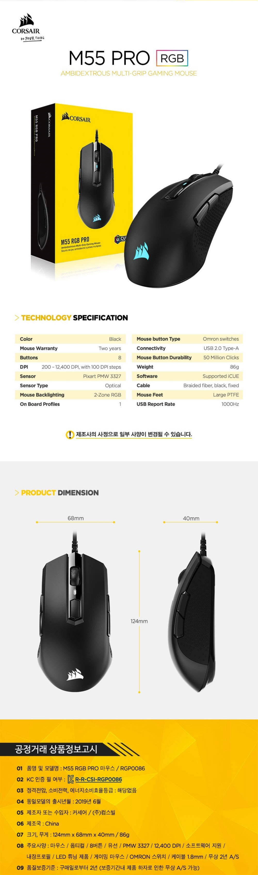 커세어 M55 RGB PRO 게이밍 마우스 블랙