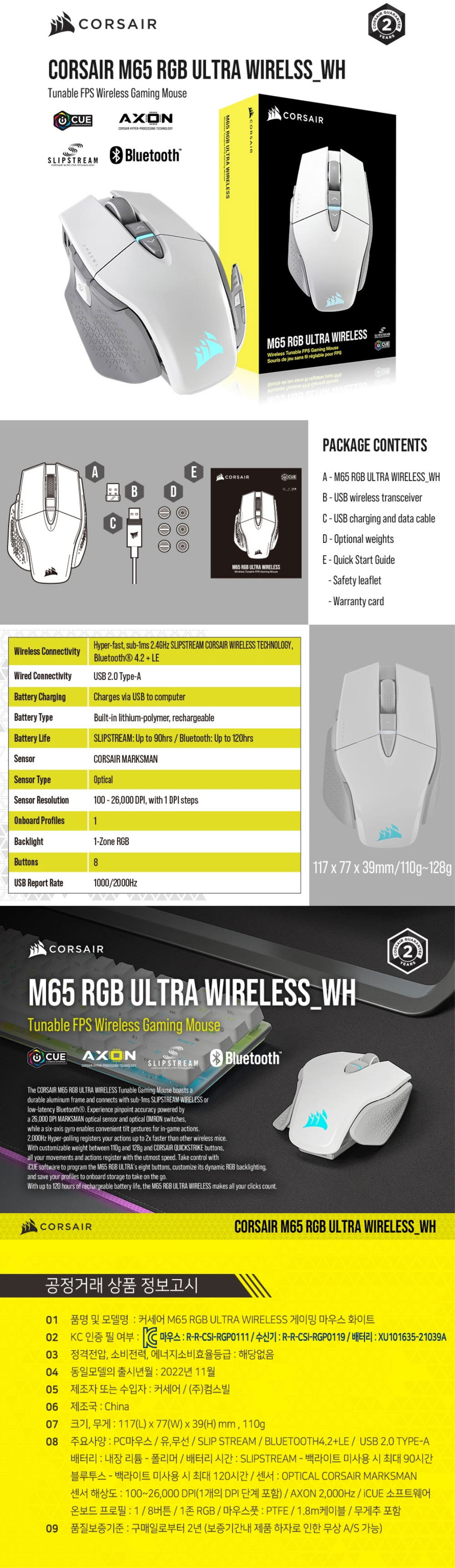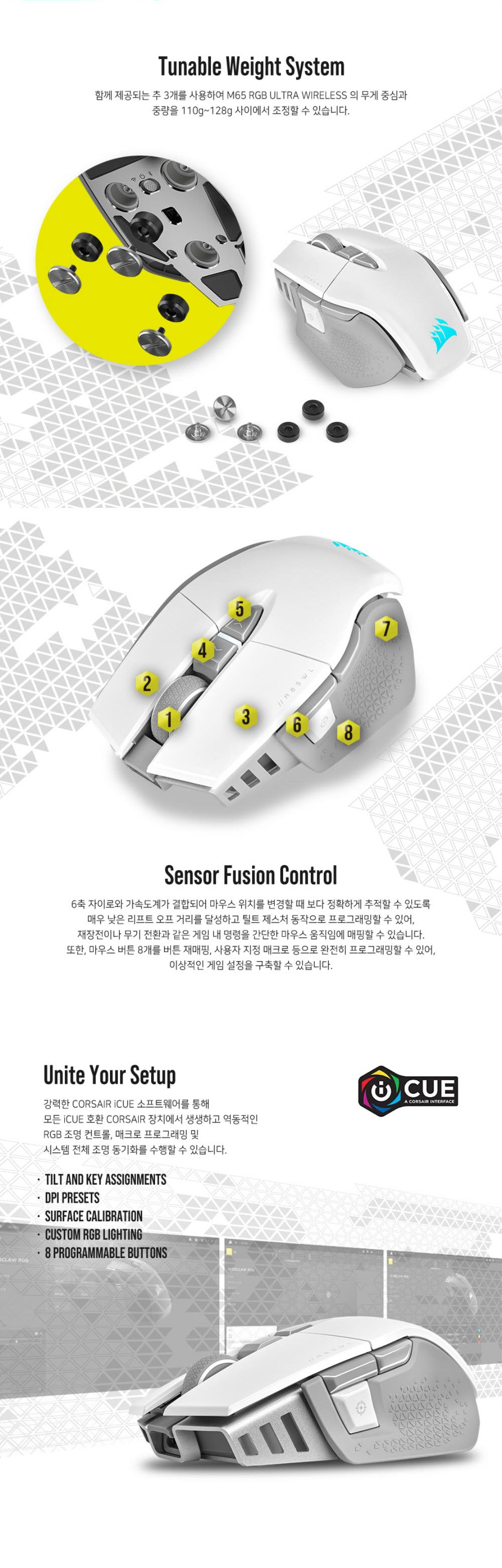 커세어 M65 RGB 울트라 무선 게이밍 마우스 화이트