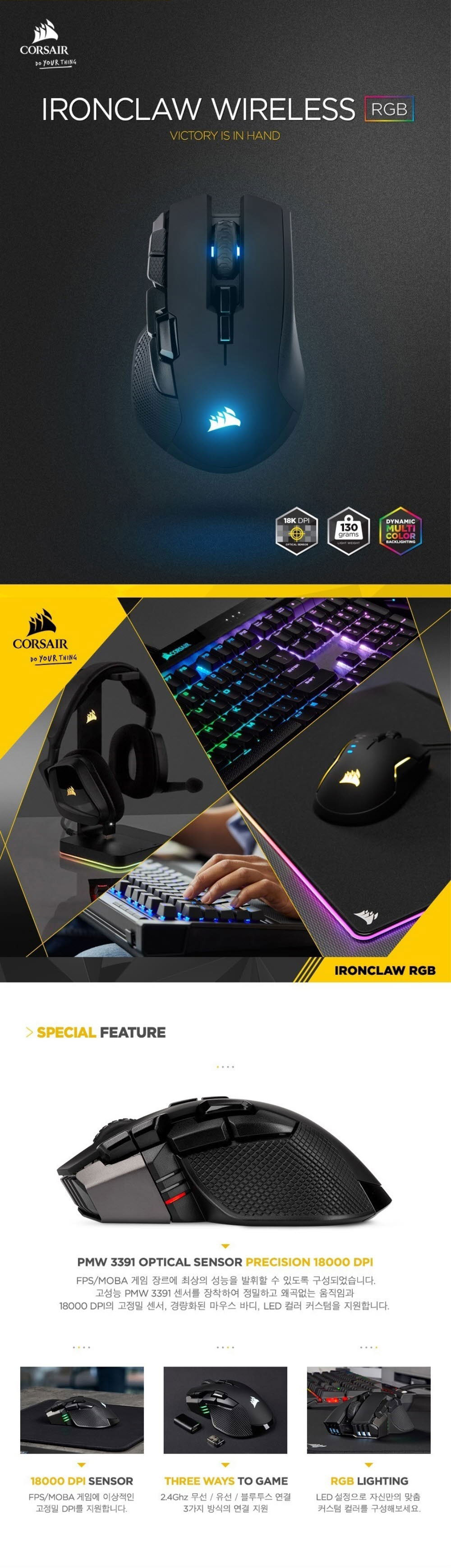 커세어 Ironclaw RGB 무선 게이밍 마우스