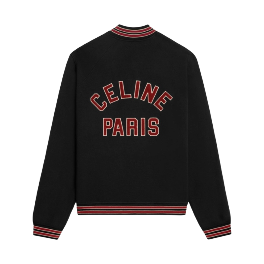 Celine Teddy College Jacket in Cotton Fleece Black Red Grape Off White