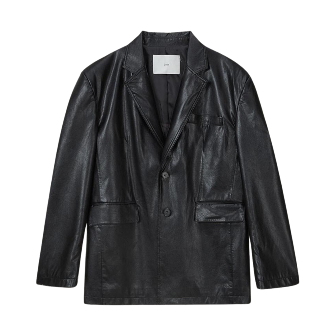 던스트 버튼드 비건 레더 블레이저 블랙