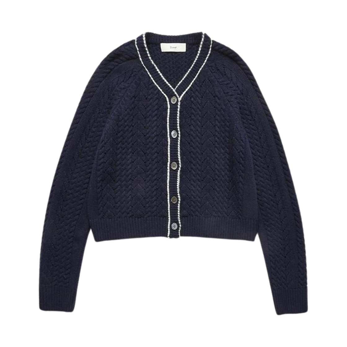 던스트 라이닝 크로쉐 니트 가디건 프렌치 네이비