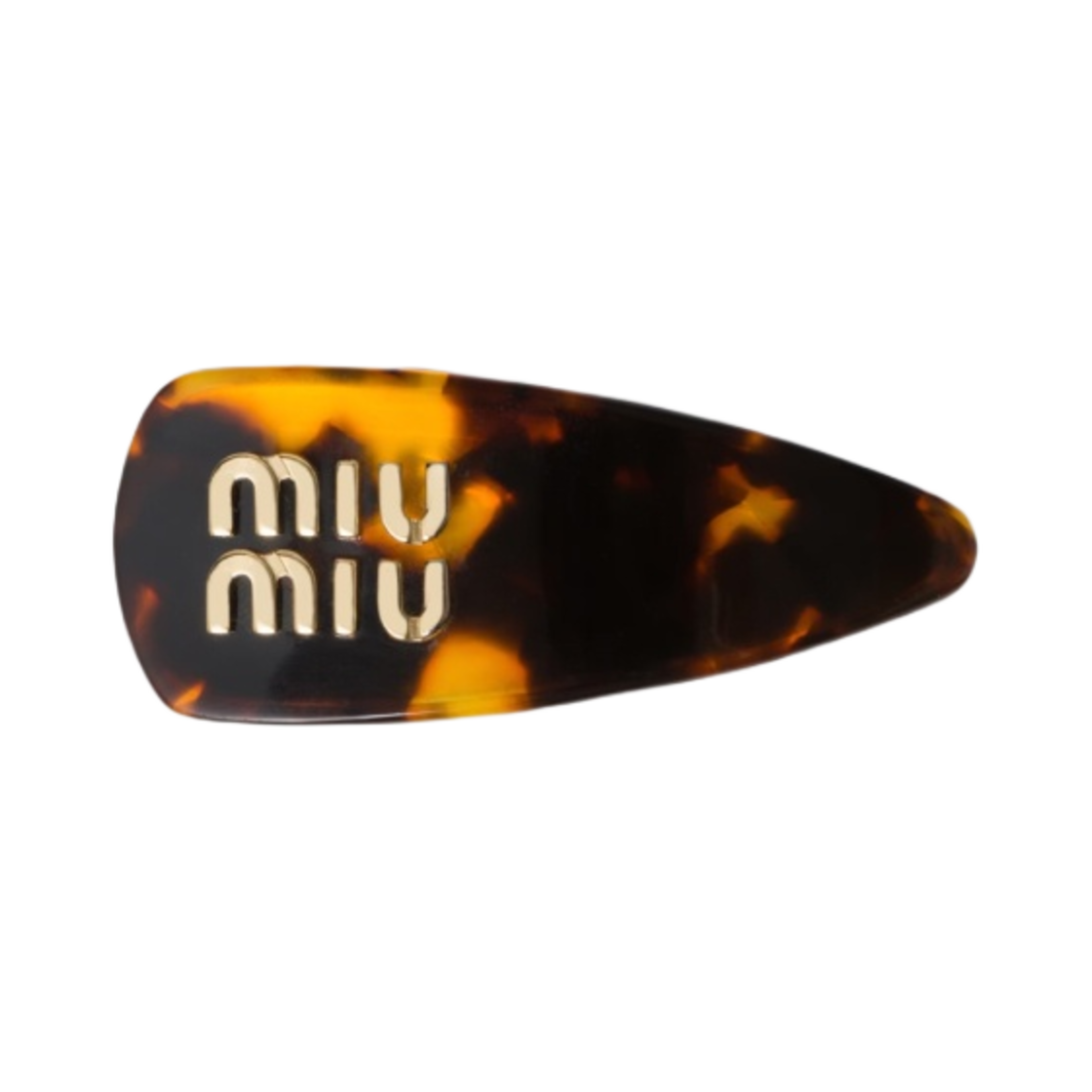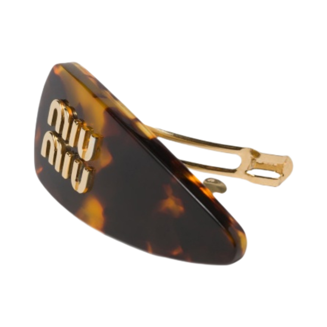 (W) Miu Miu Plexiglas Hair Clip Dark Tortoiseshell