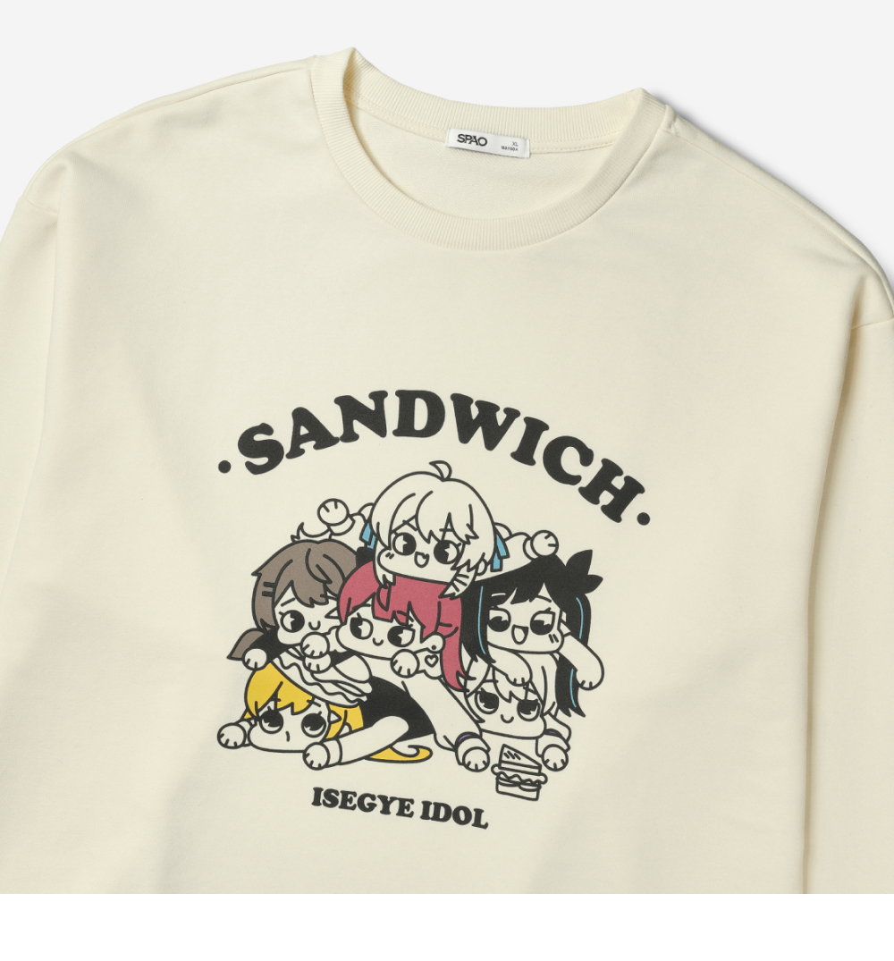 스파오 x 우왁굳 이세계 아이돌 스웨트셔츠 아이보리