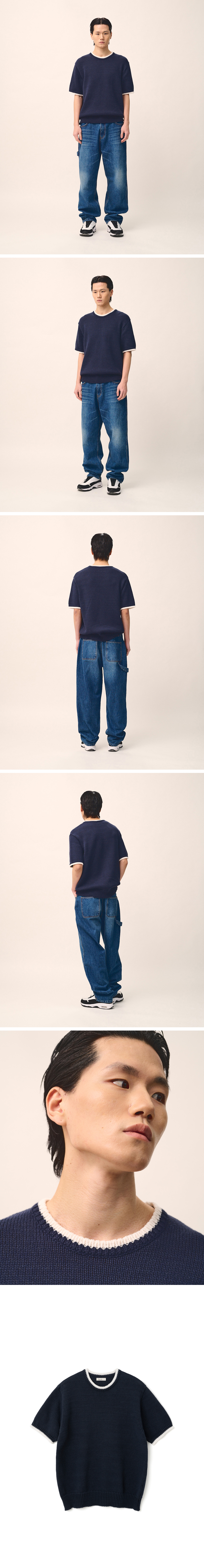 노클 223 라인 하프 니트 네이비