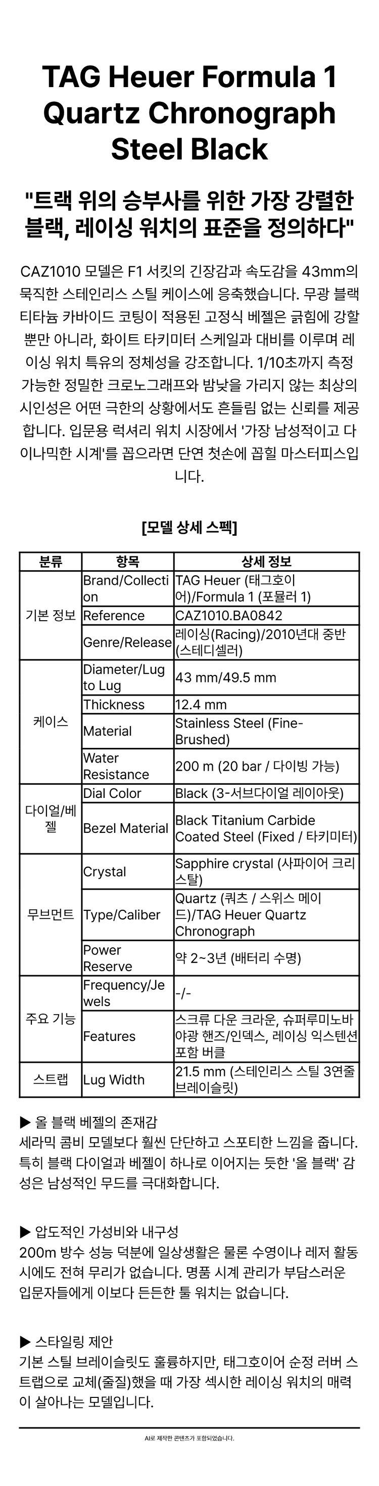태그 호이어 포뮬러 1 쿼츠 크로노그래프 스틸 블랙