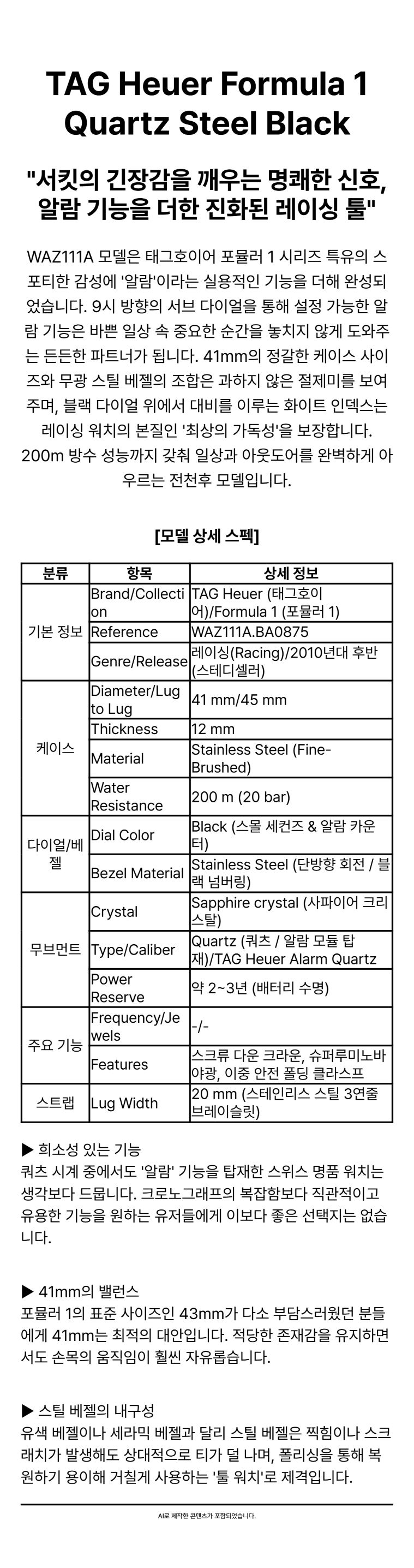 태그 호이어 포뮬러 1 쿼츠 스틸 블랙