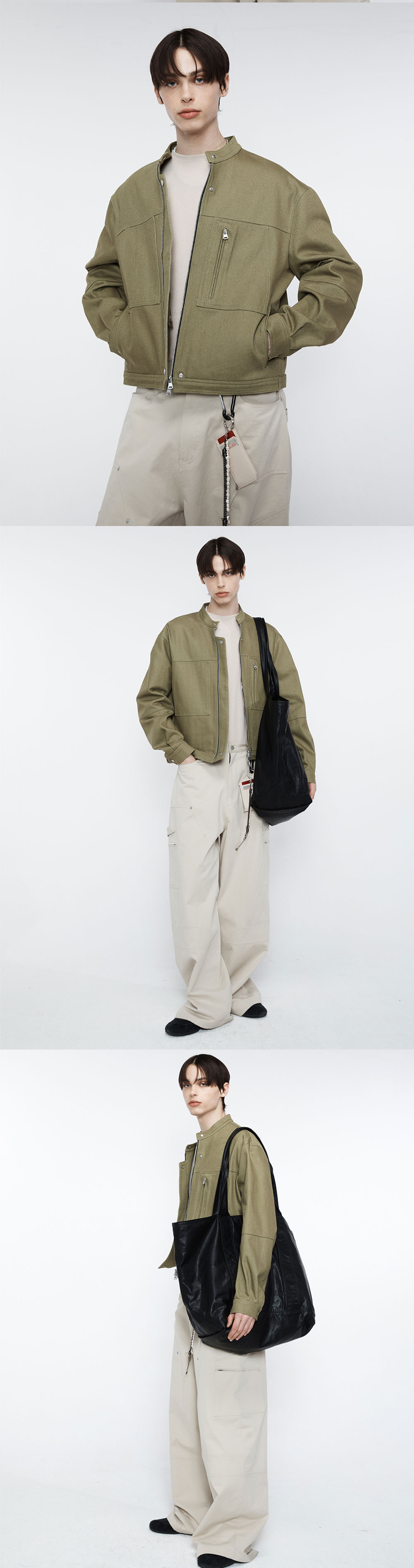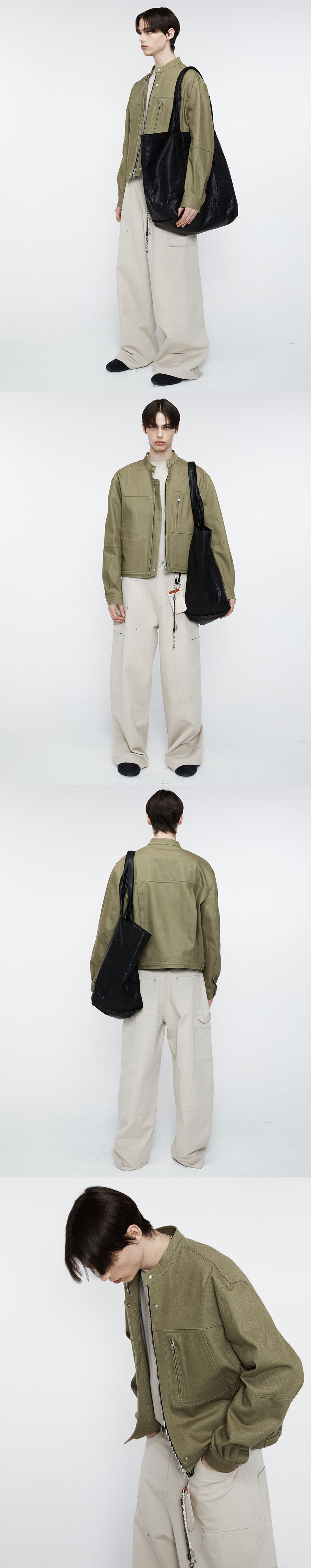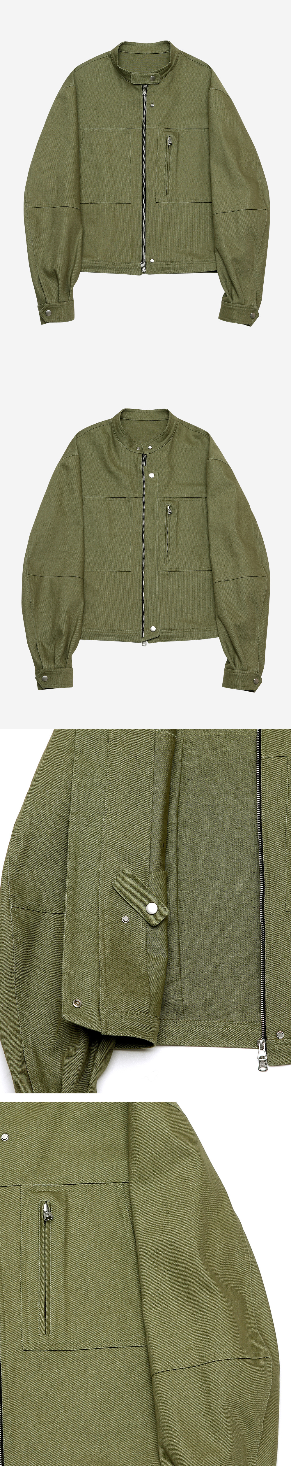 알렌느 카펜터 디테일 트윌 데님 바이커 자켓 올리브