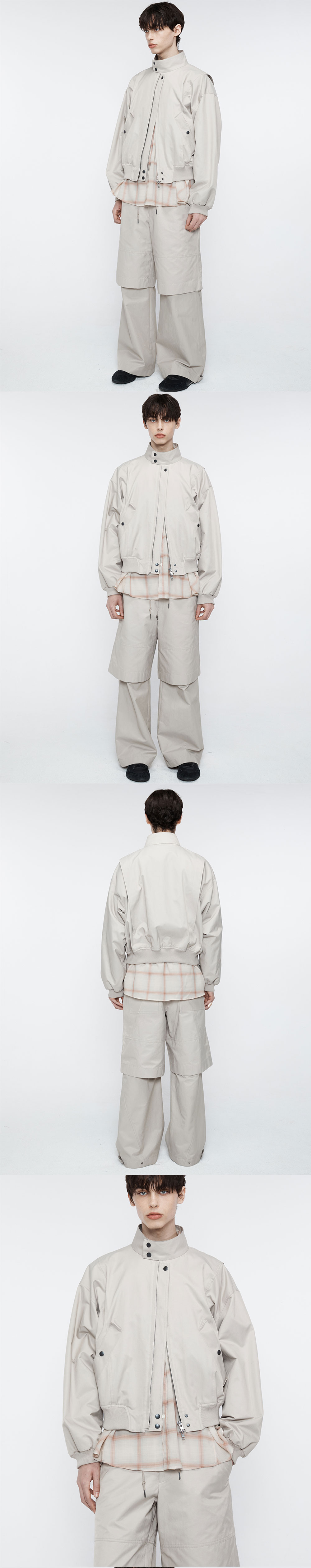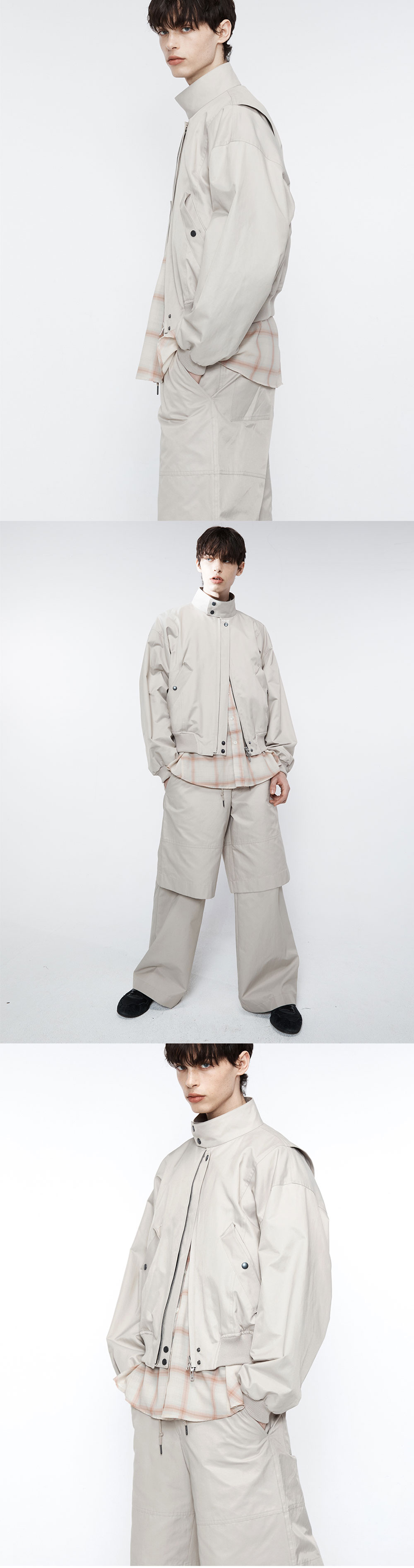 봄버 디테일을 차용한 해링턴 자켓입니다. 박시한 품과 소매통에 크롭한 기장감으로 캐주얼하게 입기 좋은 제품입니다. -DETAIL- 카라 심지 부착으로 카라가 무너지지 않게 설계 어깨선과 연결된 사선 절개 등판 액션 플리츠 디테일 입체 폴디드 포켓 디테일 내부 플라켓으로 다양한 연출 가능