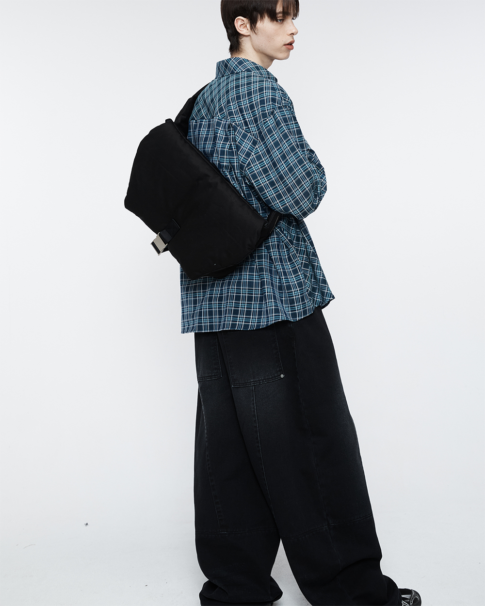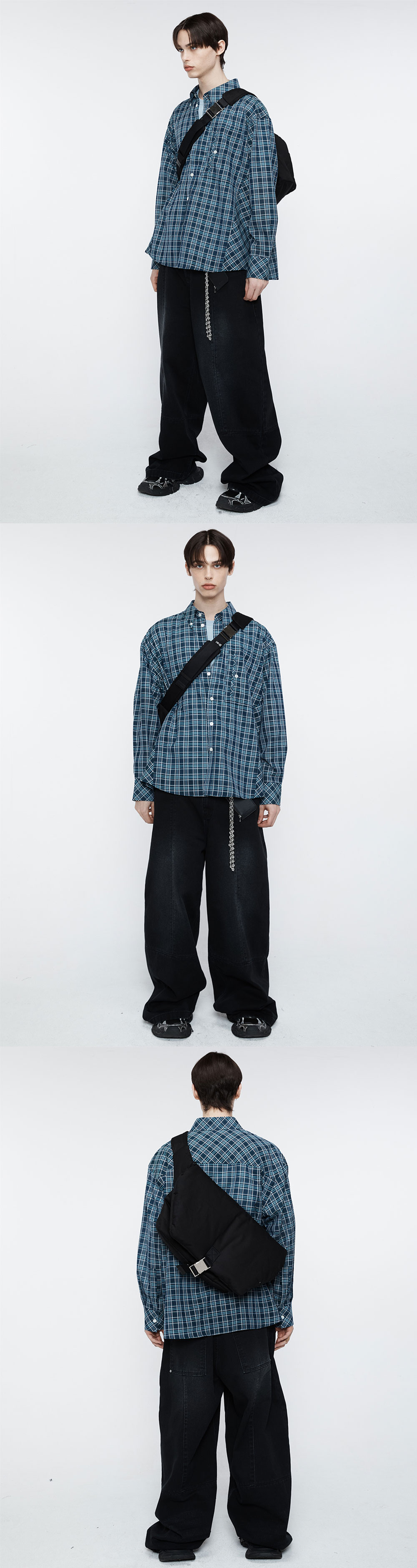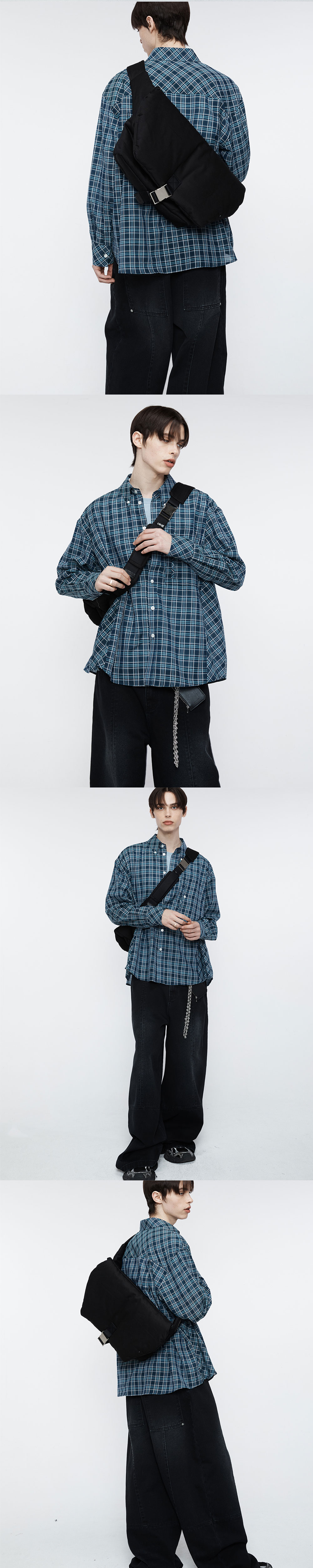 얇은 리넨울 소재로 제작된 체크 패턴의 오버사이즈 실루엣의 체크 셔츠입니다. 박시한 실루엣으로 편하게 입기 좋은 제품입니다. -DETAIL- 유니크한 카펜터 포켓 디테일 등판 사선 방향 체크로 포인트 / 사이드라인 절개 체크 사선 방향 포인트 등판 투 플리츠 디테일