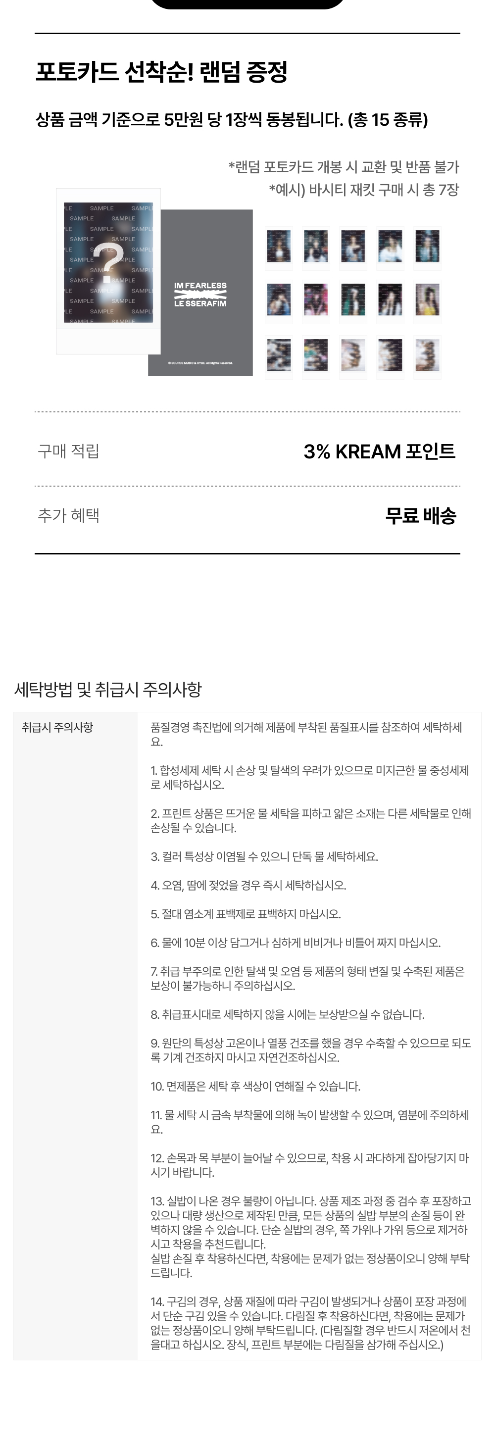* 상품마다 계정 당 최대 3개까지 구매 가능합니다. * 랜덤 포토 카드 개봉 시 교환 및 반품은 불가합니다.