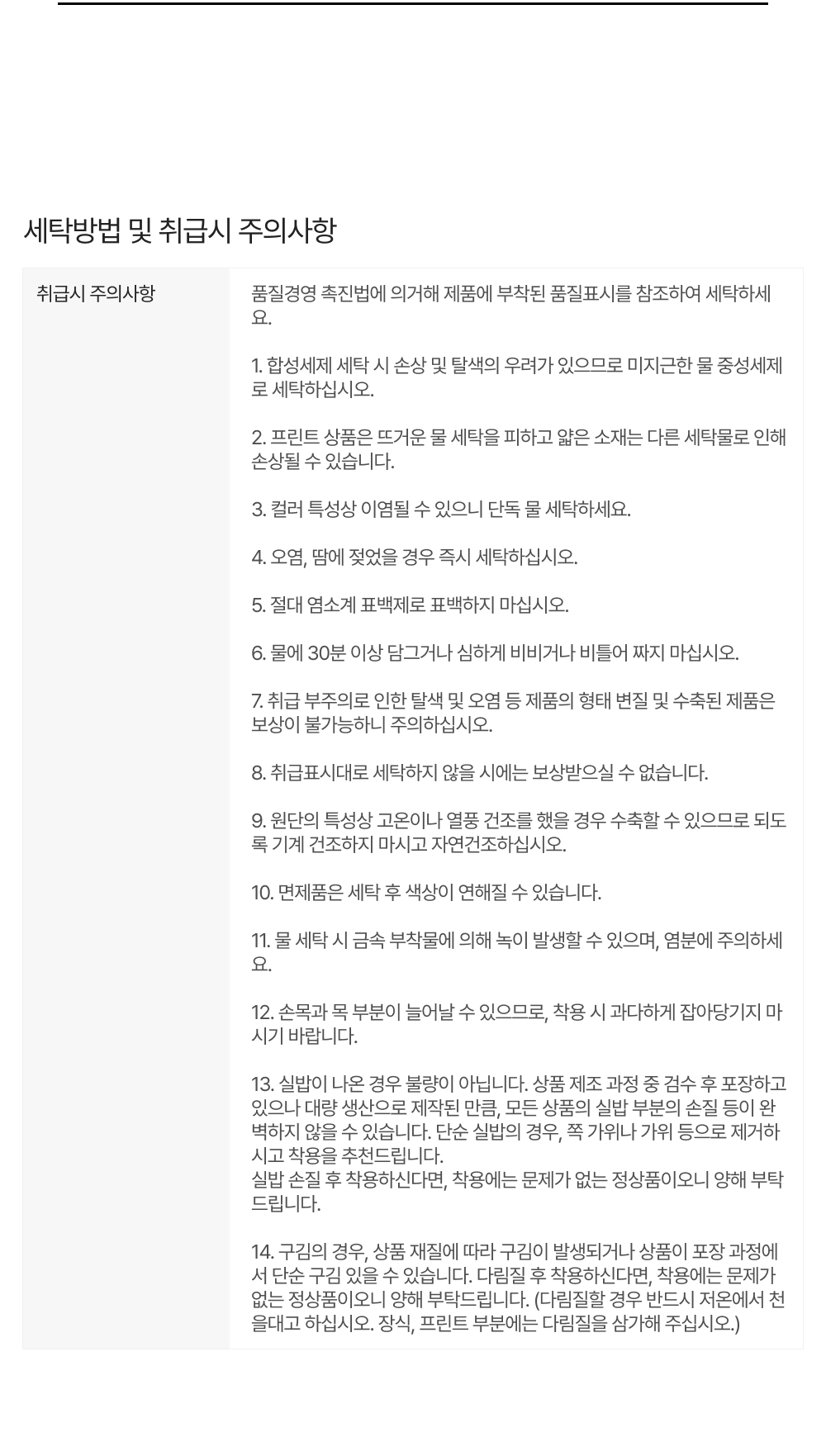 사이즈 실측의 경우 제품의 특성 및 측정 방식에 따라 오차가 발생할 수 있습니다.