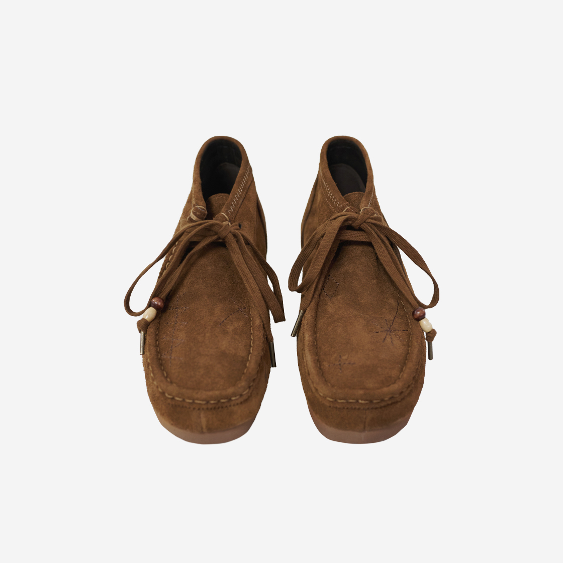 * 본 제품은 조금 더 날렵하게 깔리는 형태감, 끈을 조였을 때 연출 되는 특유의 탑 쉐입 각이 가장 특징입니다. 후면의 뒷꿈치 덧댐 디테일 등은 스웨이드 슈즈로서 사용감이 누적되며 보다 자연스럽고 멋진 형태로 변형해나갈 수 있는 방식으로 마감되어 있습니다.