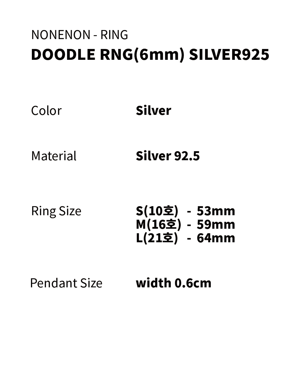 논논 두들 링 6mm 실버 925
