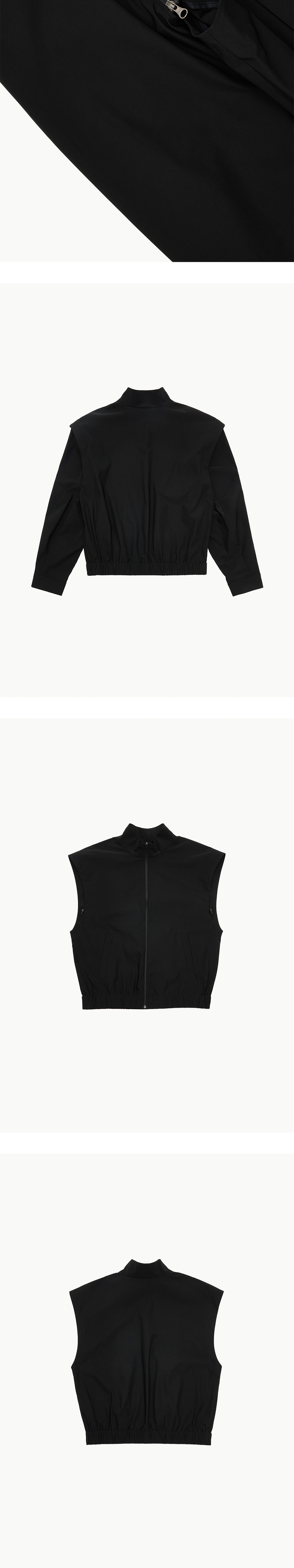 디테쳐블 하이넥 점퍼 볼륨감 있는 실루엣의 디테쳐블 하이넥 점퍼입니다. 오버사이즈 하게 떨어지는 어깨라인에 햄라인을 잡아 구조적인 실루엣으로 디자인되었습니다. 높은 넥라인을 사용하고 봉제선을 최소화해 미니멀한 무드를 연출했으며, 동시에 햄라인의 밴딩 디테일로 캐주얼한 무드를 더했습니다. 소매 탈부착이 가능해 베스트형 자켓으로도 착용이 가능한 활용도 높은 아이템입니다. 오버사이즈핏 볼륨감 있는 실루엣 탈부착 가능한 소매 햄라인 벤딩디테일 앞중심 지퍼 *실제 컬러와 디테일은 상세 이미지와 가장 유사합니다. 모델 착용 사이즈 M / 모델 스펙 188cm